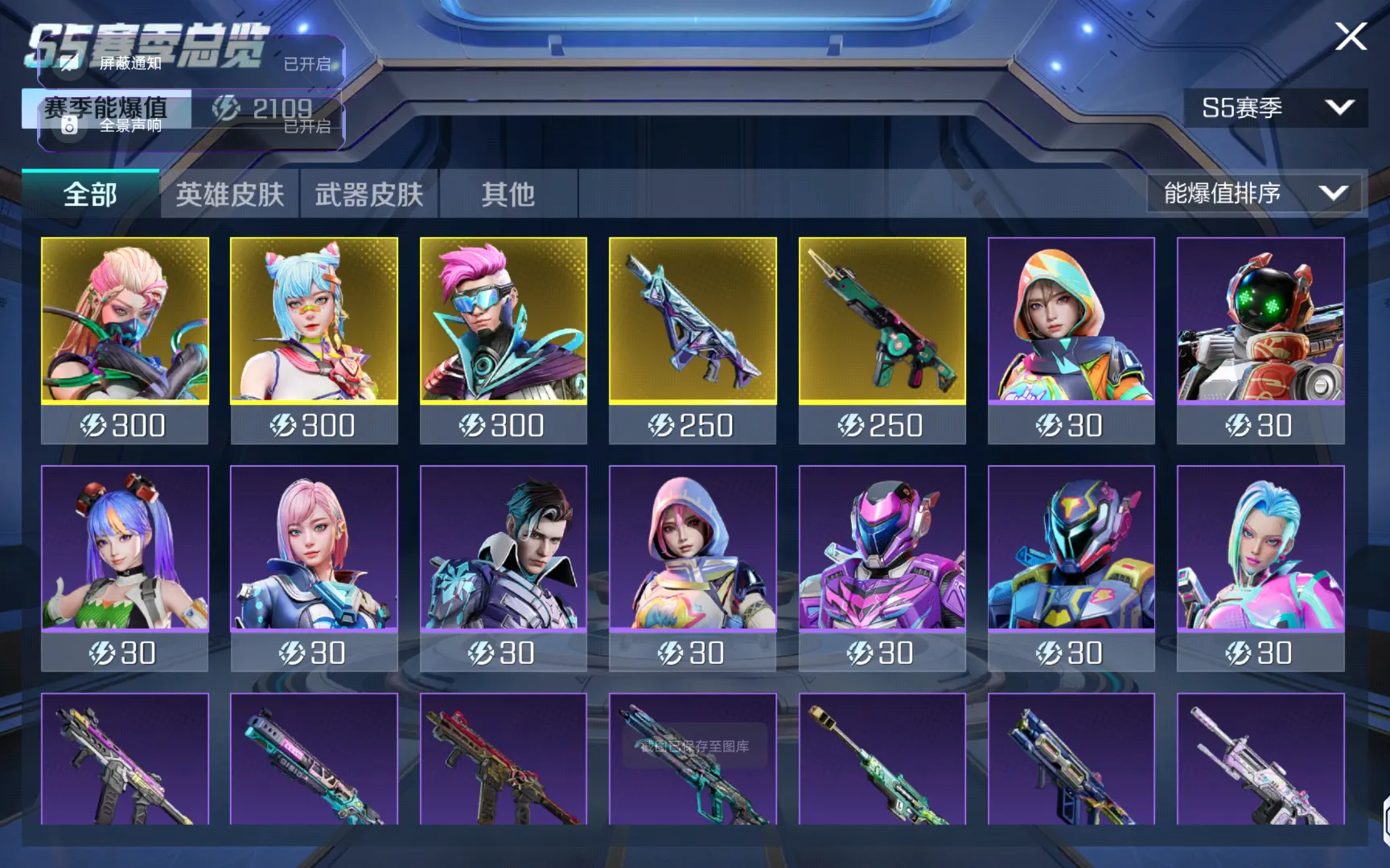 【安卓】 全英雄/传说皮肤2个枪㭜1个/皮肤102/金皮29个紫皮64个/枪械皮肤100/金皮23个紫皮62个