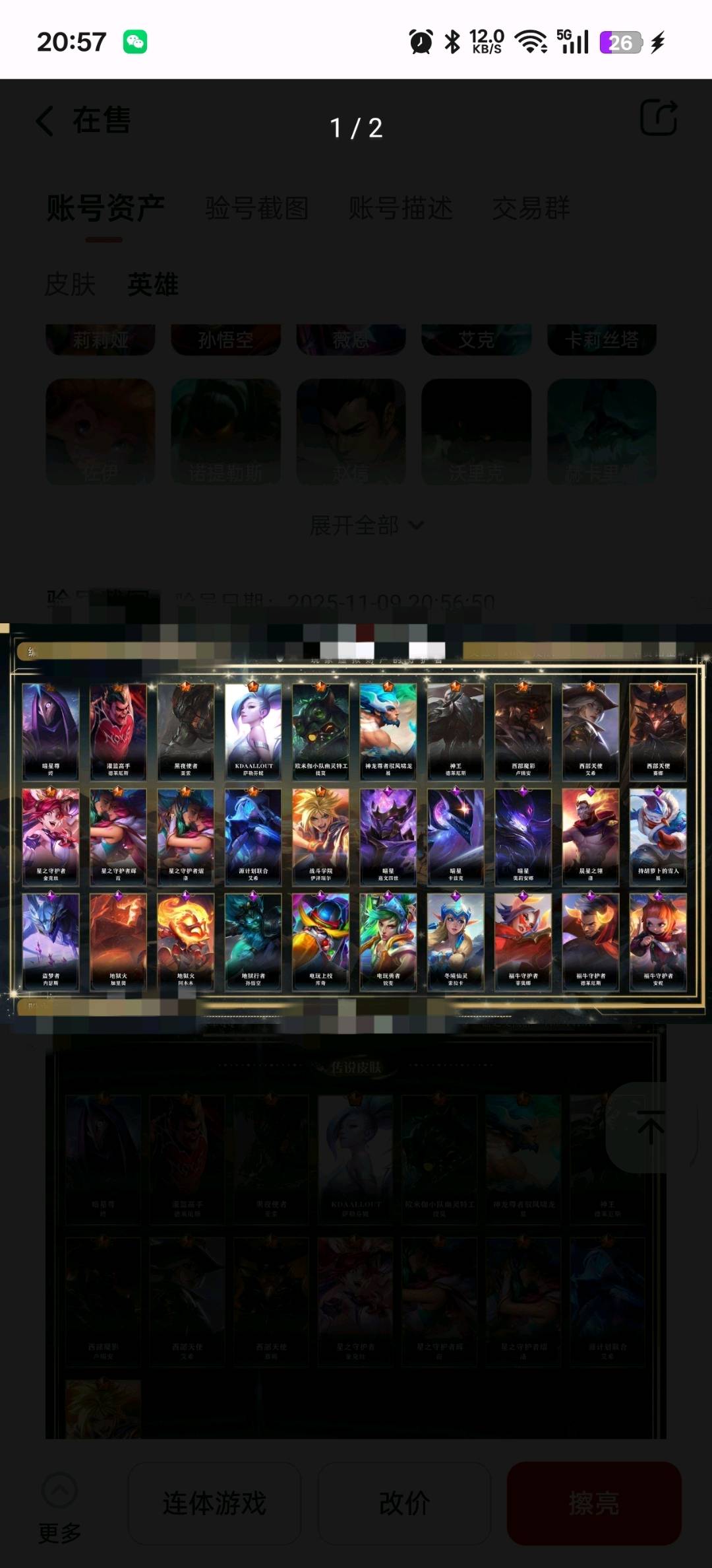 英雄108 皮肤204 15传说/98史诗/ 华贵铂金Ⅳ