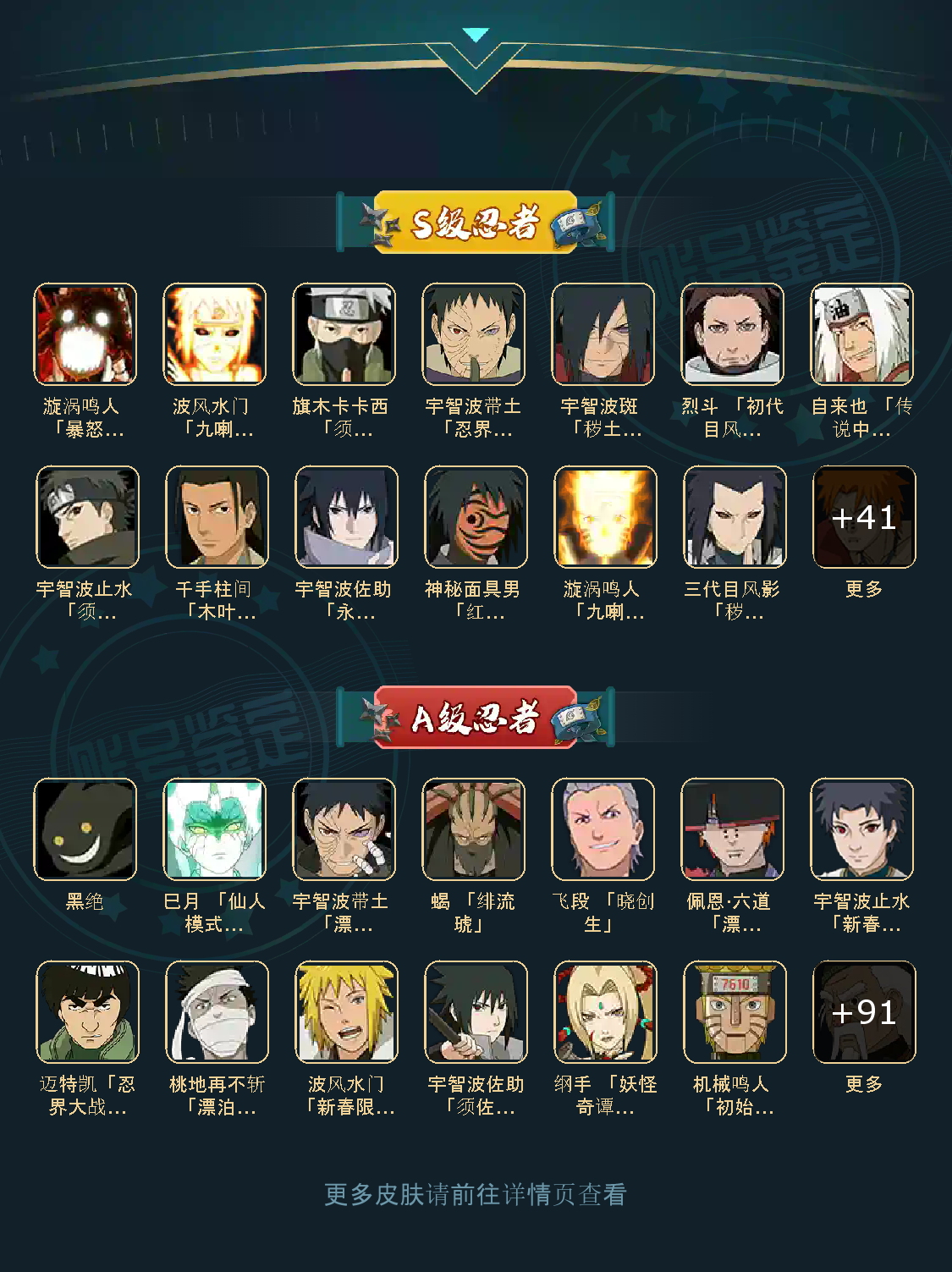 53S 104A 410忍者 宇智波带土「暴怒」干柿鬼鲛「鲛肌融合」宇智波佐助「疾风传咒印」迈特凯「忍界大战」宇智波带土「忍界大战」宇智波斑「木叶创立」佩恩·天道「超」