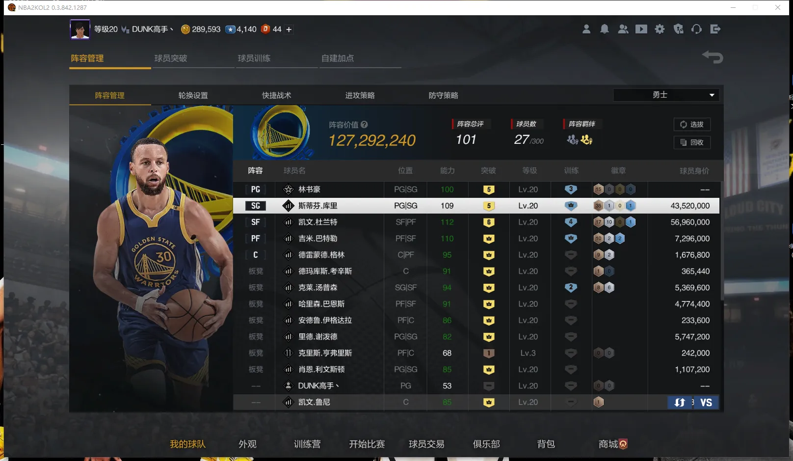 🌊 5突萌神-斯蒂芬库里 6突杜兰特 10突克莱 10追梦格林