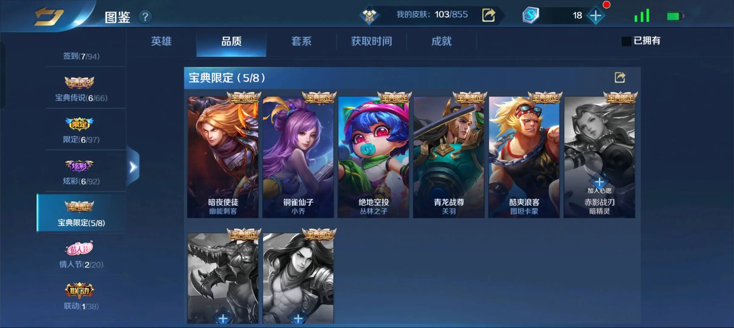 【安卓】 (应用宝渠道服)S8赛季老号,五个宝典限定皮,镇魂街联动除北落师门都有,莫莫也有,详情看截图