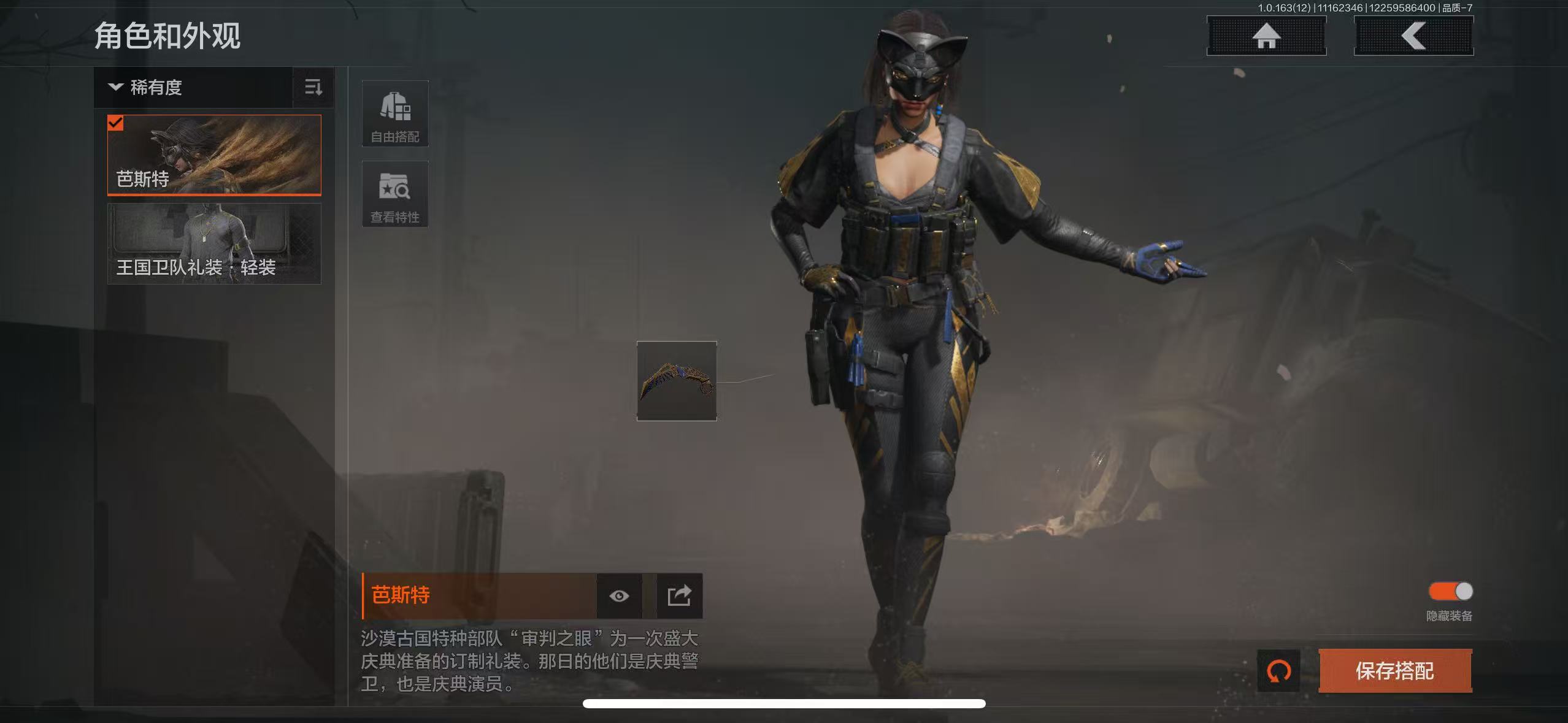 红皮 芭斯特-3刀皮,近战武器:涂利刃,空腔战术,苍弯利爪;枪皮:伦琴幻影FAL,旧王圣谕QBZ191,骑士之剑VSS,旧王圣谕VSS,利齿风暴MPX;