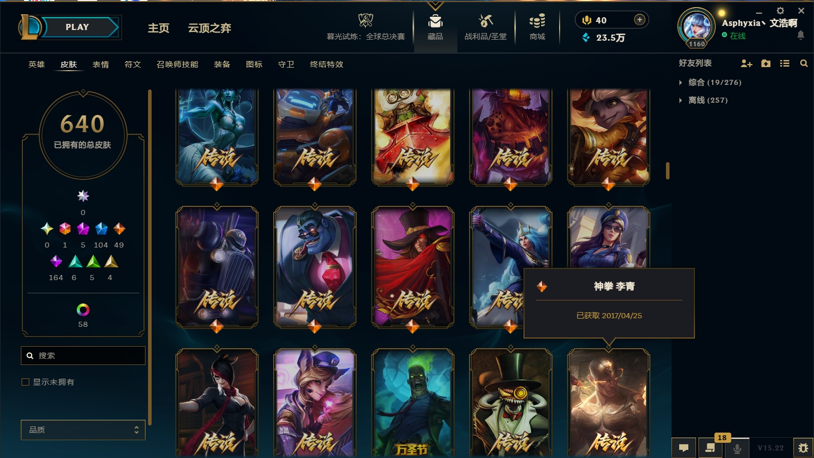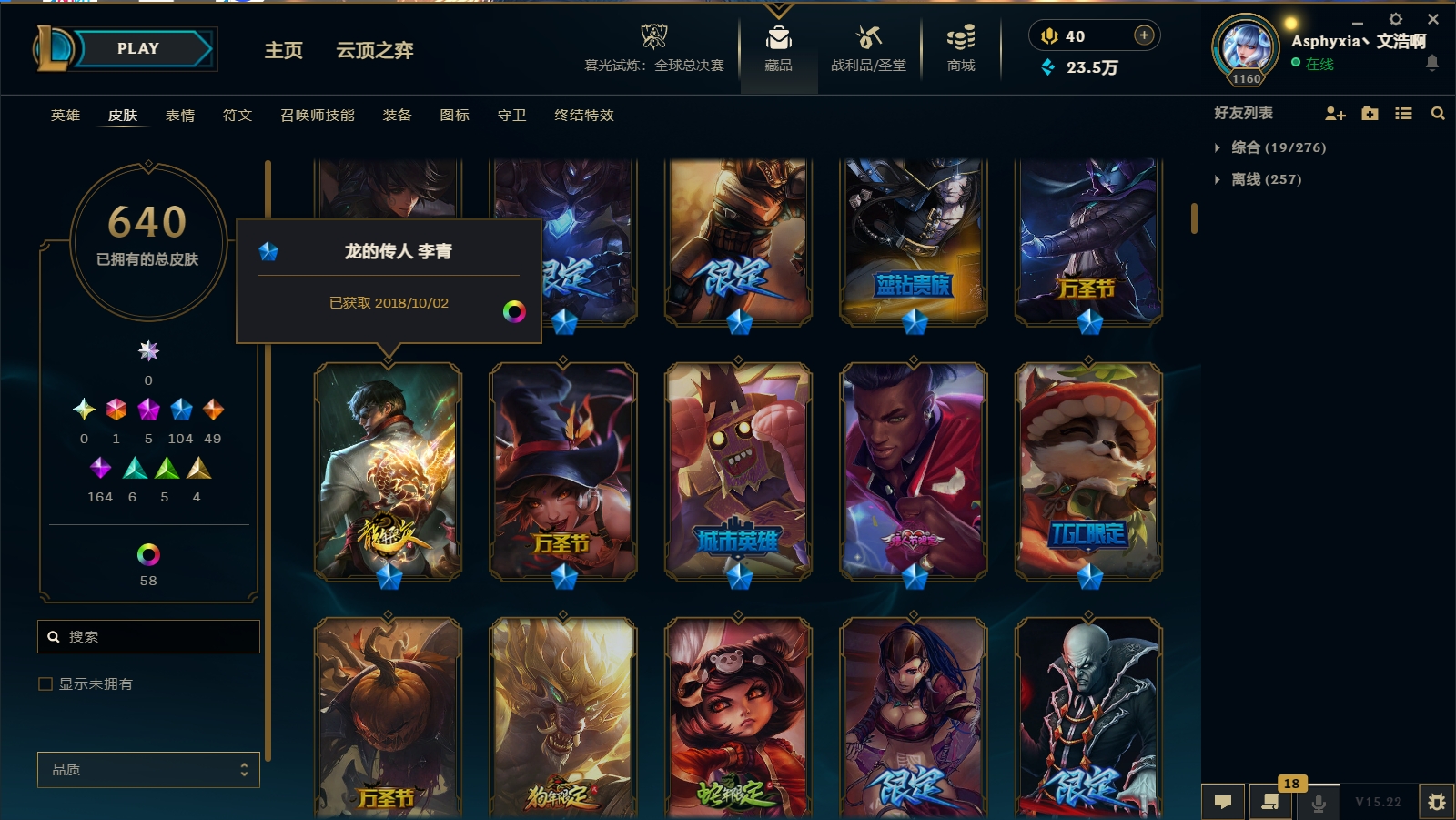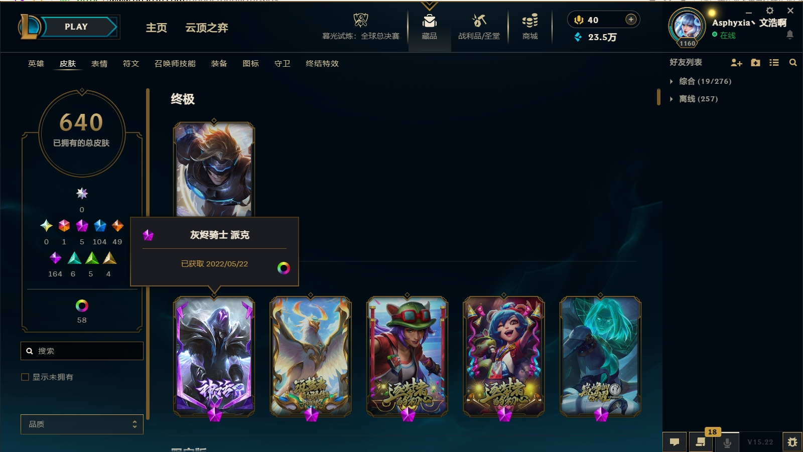 - 神话皮肤数量: 5