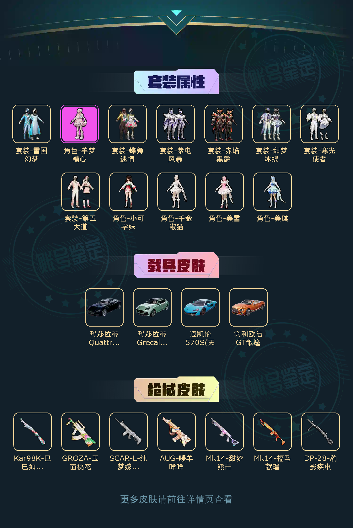 【粉色枪皮】GROZA-玉面桃花/SCAR-L-纯梦嫁纱/Kar98K-巳巳如意/Mk14-甜梦熊击/DP-28-豹影疾电