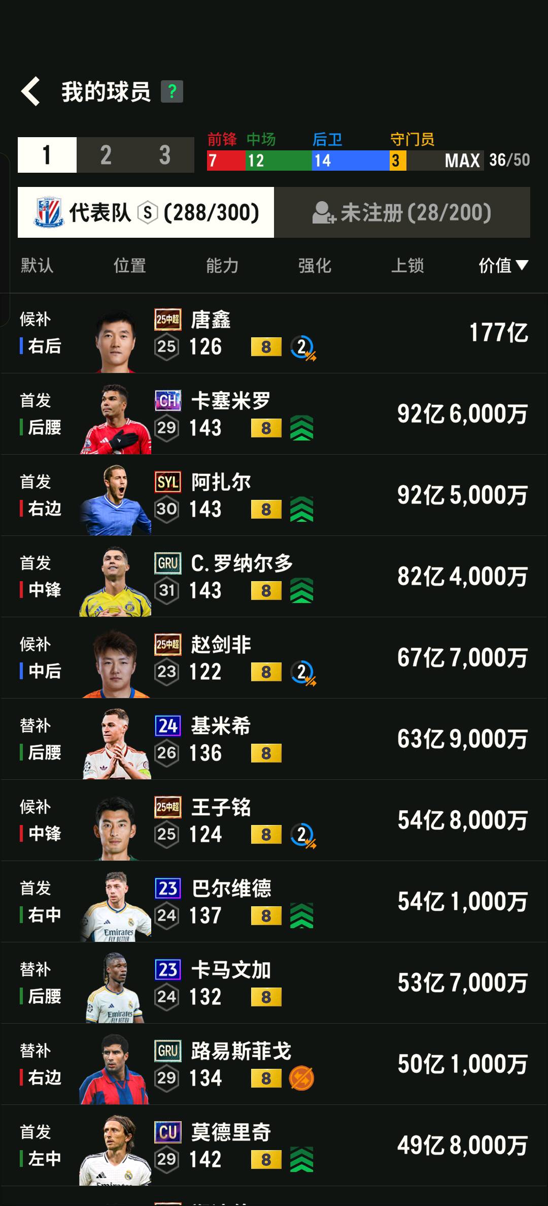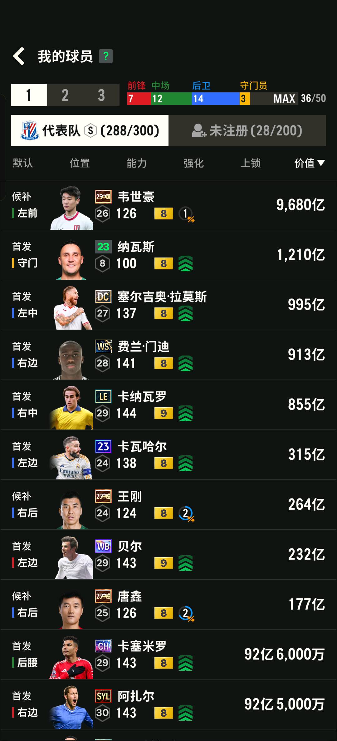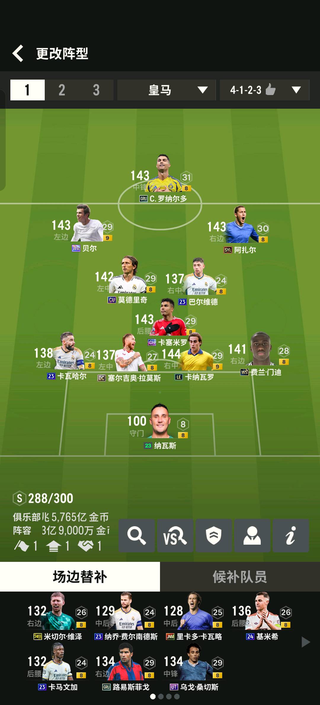 皇马套价值一兆左右 登陆密码0112 能力前锋140+中场140+后卫140+