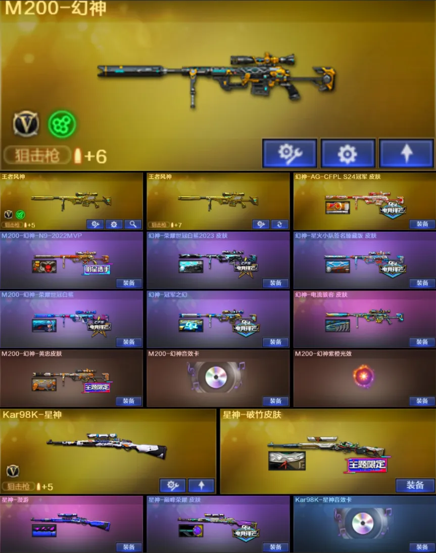 【热门音效卡】:M200-幻神音效卡/Kar98K-星神音效卡/AWM-裁决音效卡/Scar Light-白虎音效卡/QBZ03-金色蔷薇音效卡/加特林-炼狱音效卡/Barrett-极光音效卡