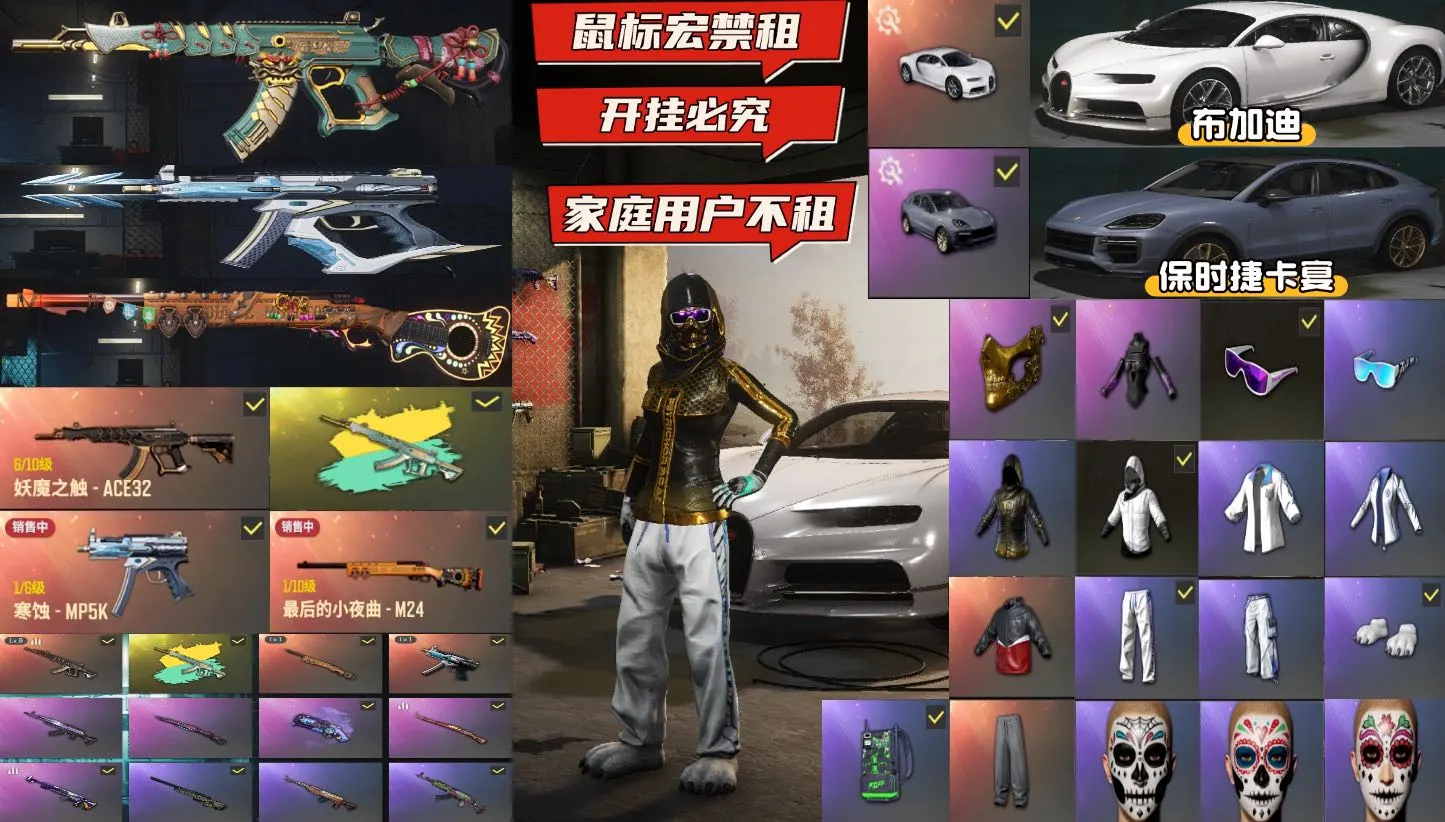 二级密135569可排✅保时捷卡宴布加迪跑车➕6级异色妖魔ace➕夜曲m24寒蚀mp5➕飘柔战神白战