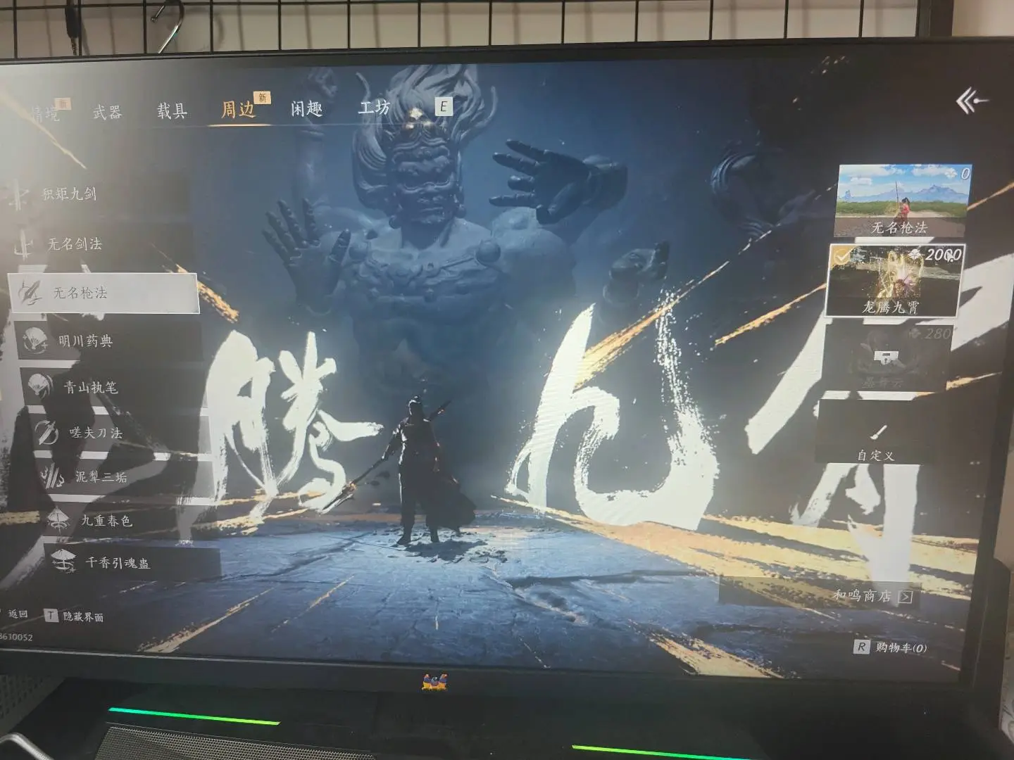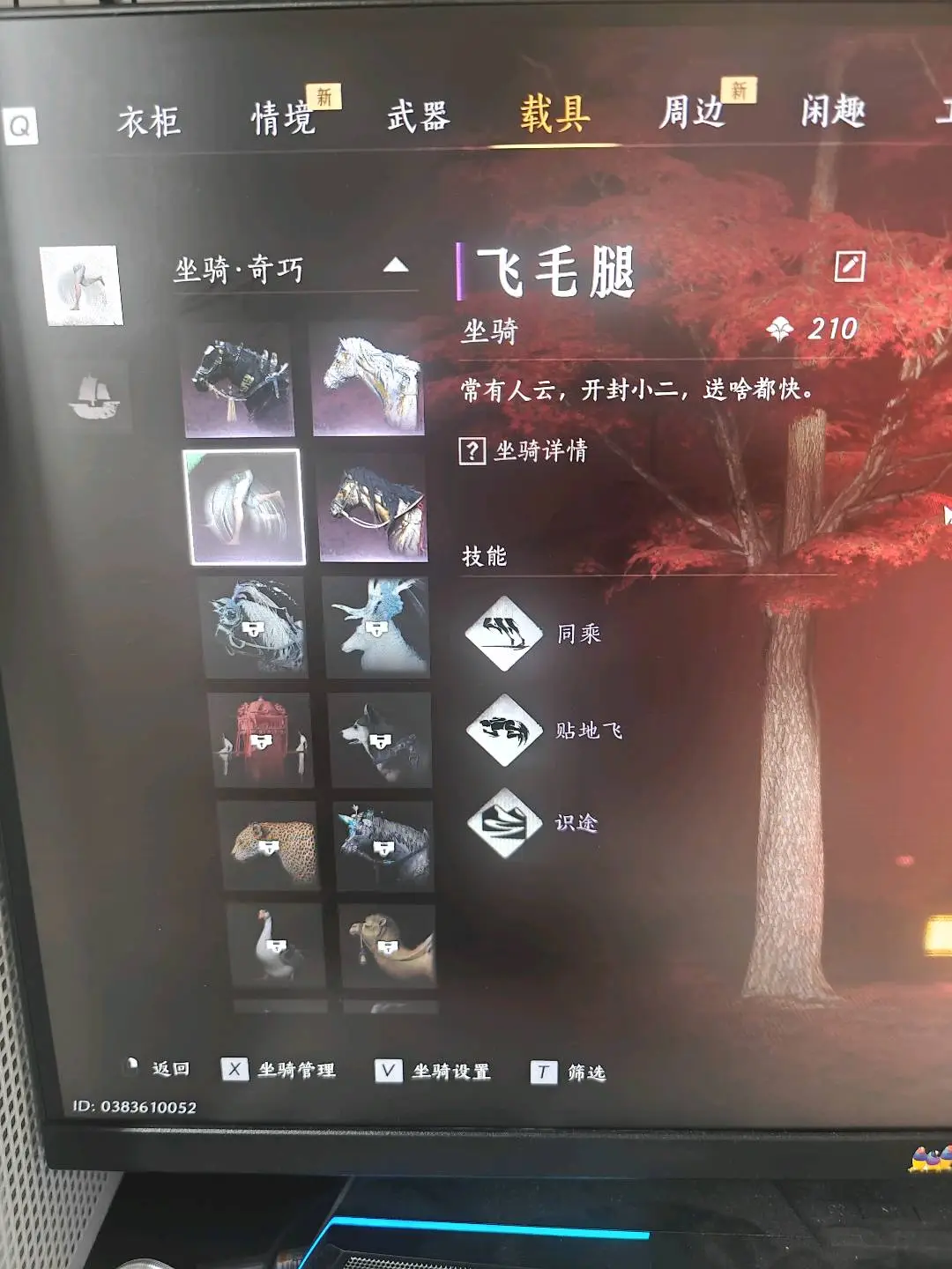 皮肤瑞雪歌,武学特效万剑归宗和龙腾九霄,武器葱葱那边木棍,出竹意,坐骑飞毛腿