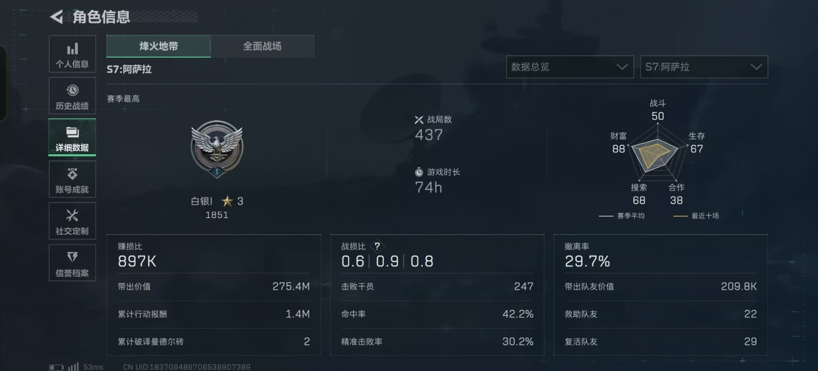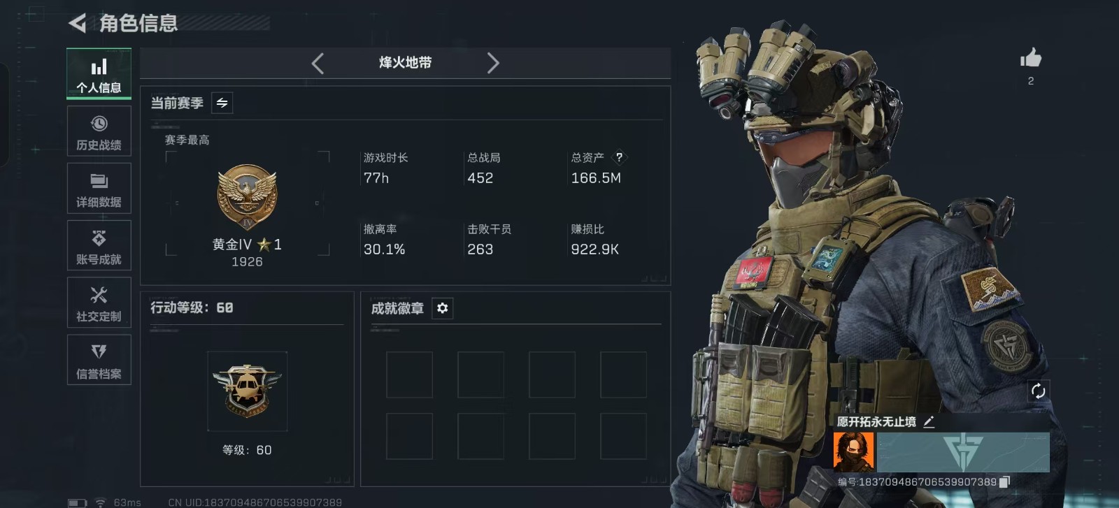 - 烽火地带段位: 黄金