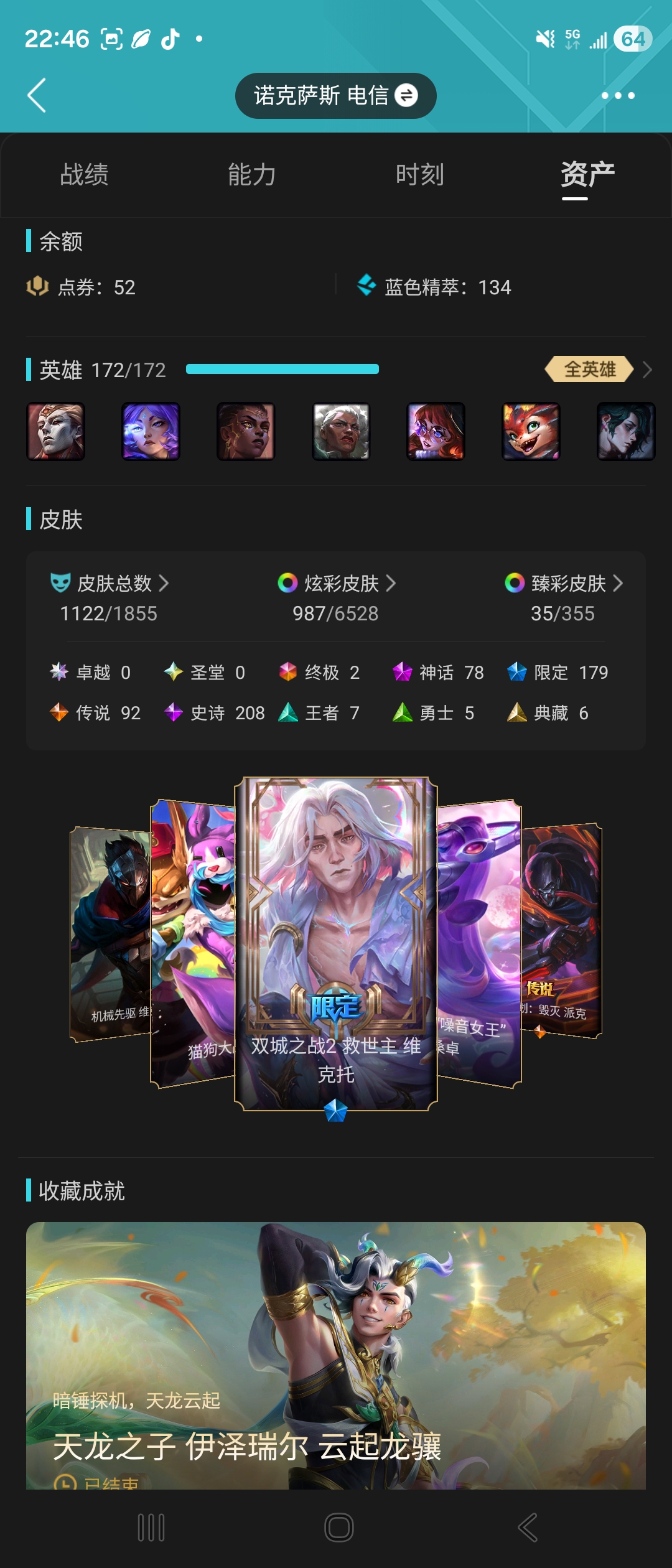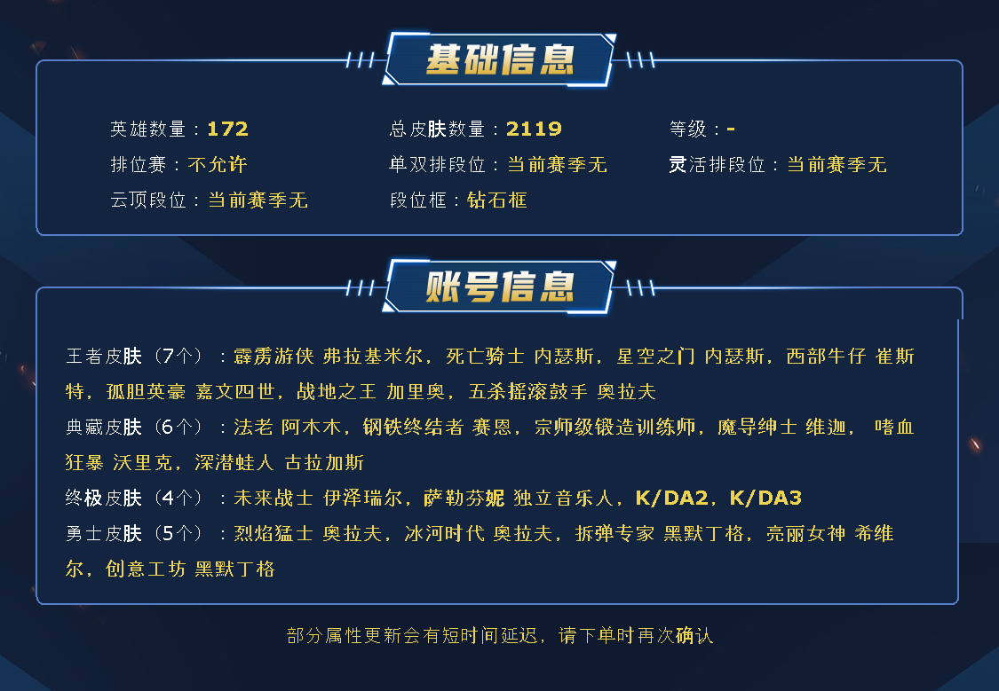 【允许排位】【允许排位】联盟二区【诺克萨斯】 1122原皮肤/987炫彩/78神话/龙瞎/殿堂妖姬v