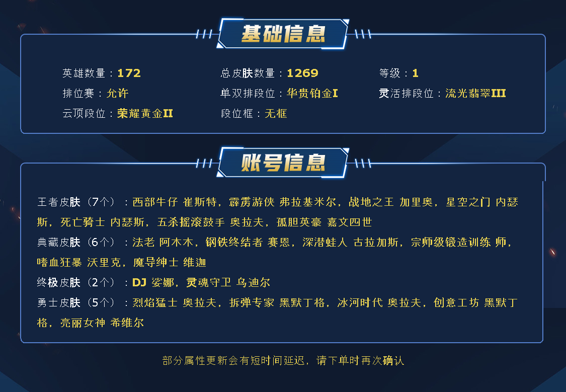 ~~喜欢记得收藏~~可排位~~1261皮全英雄丨938原皮323炫彩~~租之前尽量查一下游戏ID,确保段位是您需要的,避免浪费您的时间~~请勿挂机逃跑故意送人头,谢谢合作,谢谢~~