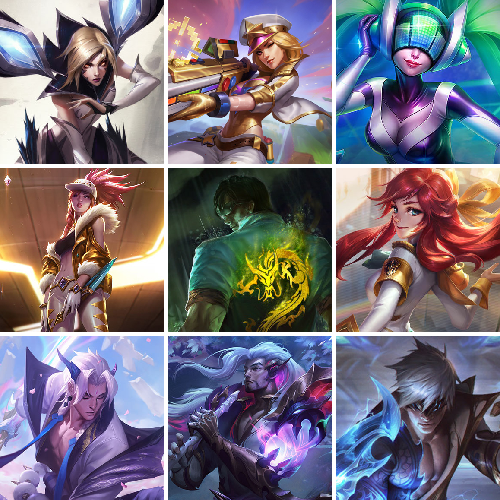 【重要头像】觅心游侠卢锡安 雪花 SSG霞 寒格薇 勇者阿狸炫金 我麦是开的么 阿兰 击拳 救生圈 KDA卡莎BADDEST KDA卡莎 KDA萨勒芬妮 小斗 SSG伊泽瑞尔 电玩女神厄运小姐 可爱悠米 可爱安妮 烈焰美人薇恩 神龙烈焰金克丝炫彩 真实伤害艾克 真实伤害艾克炫彩 至臻太空律动璐璐 至臻战斗学院蕾欧娜 至臻福牛守护者菲奥娜 至臻女帝黛安娜 至臻KDA卡莎 至臻灵魂莲华提莫