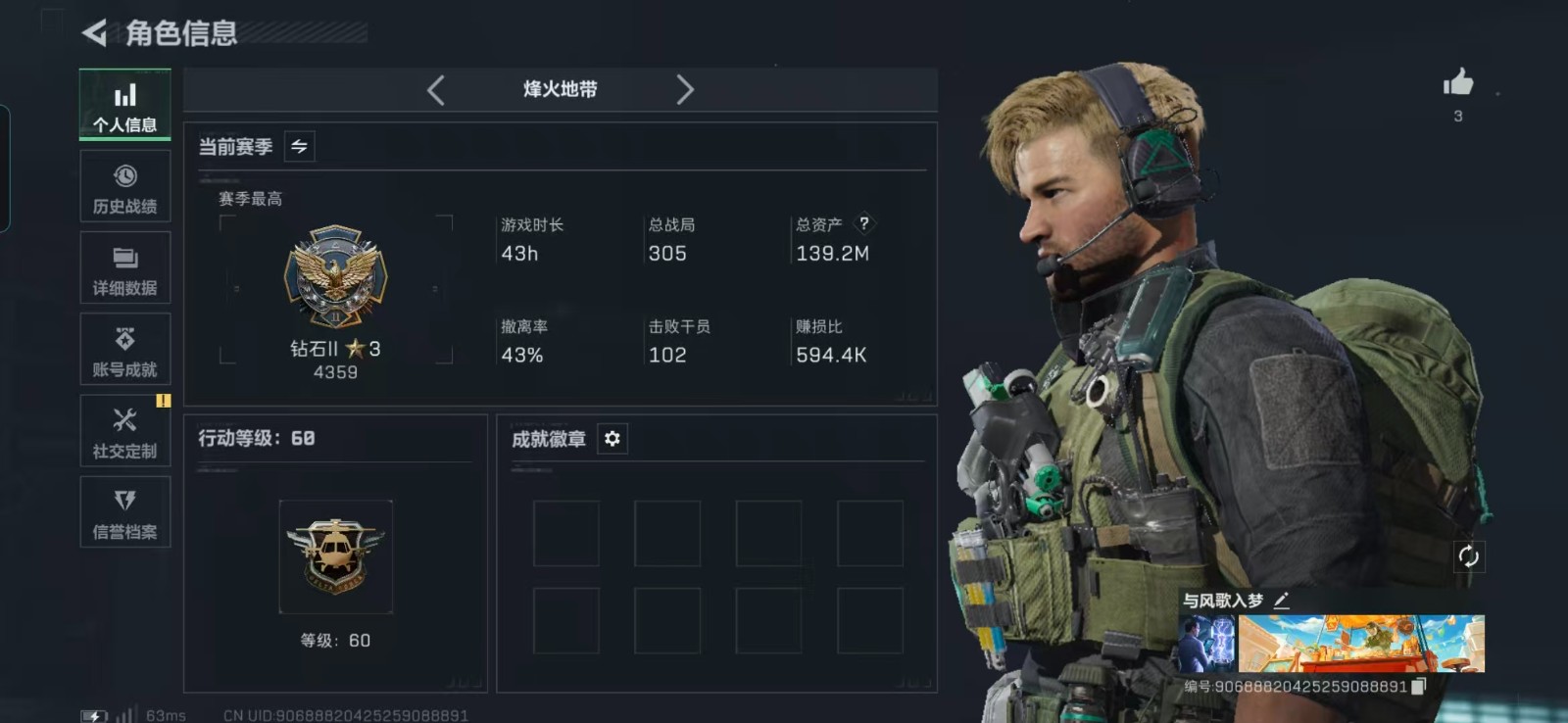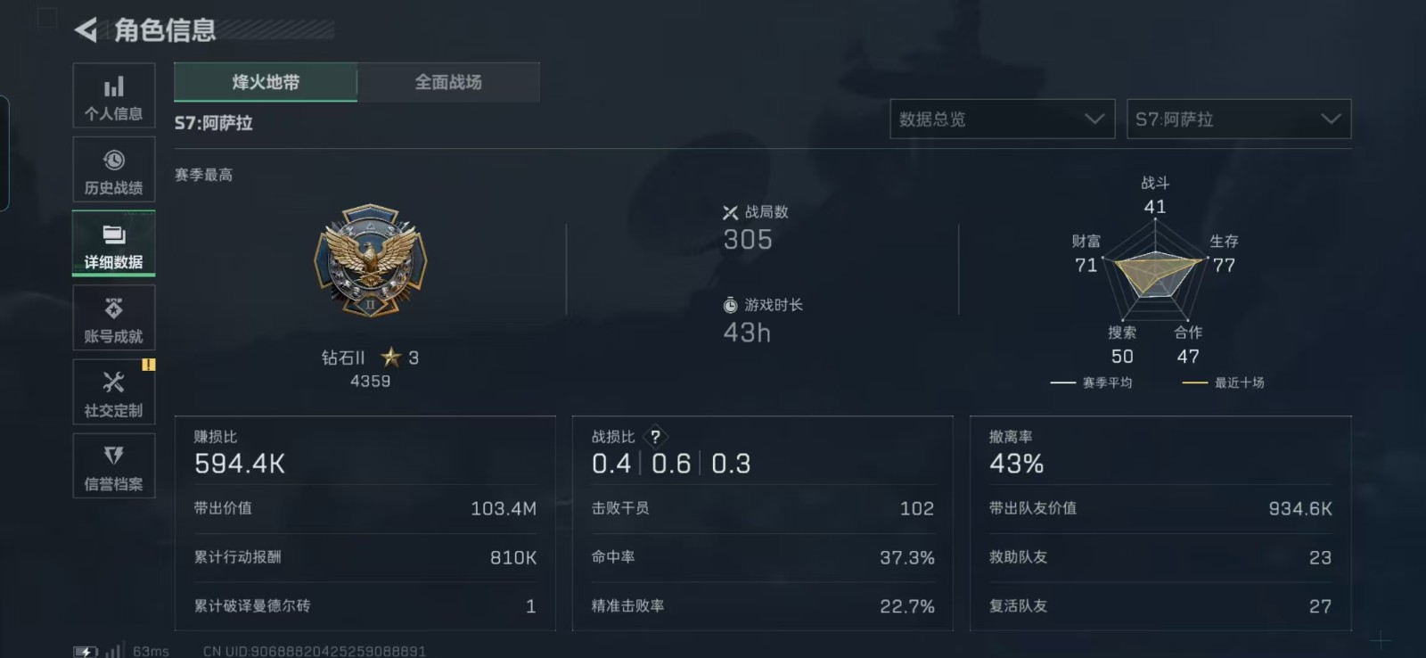 - 烽火地带段位: 钻石