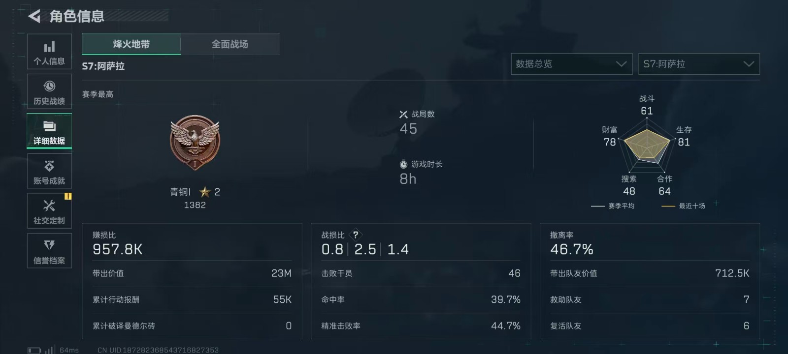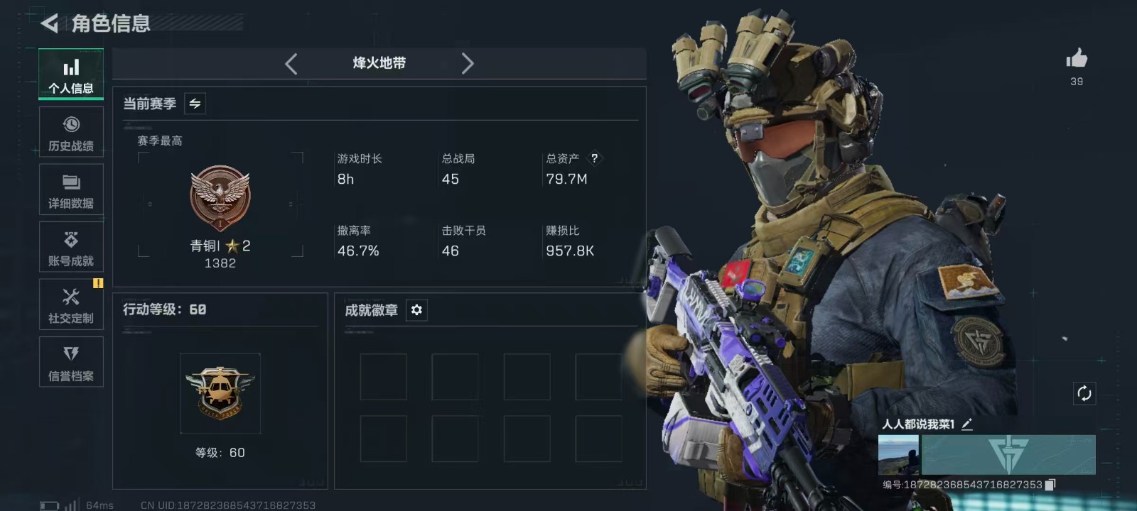 17发AW,9格6体,3件六甲,1个六头,黑天际线,冻结或高危都可秒解🔥60级🔥低KD🔥哈夫币用不完系统会直接退,绿色手搓