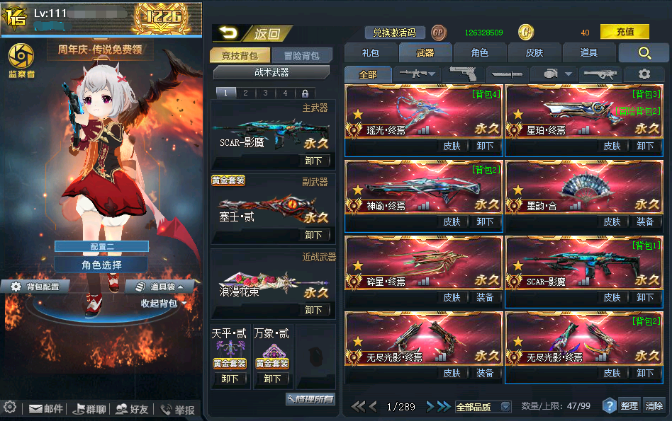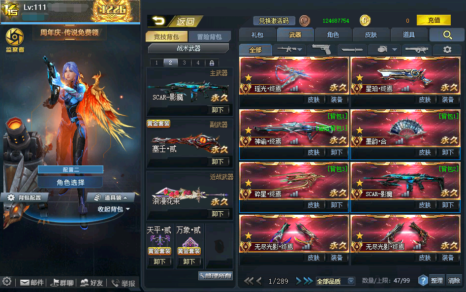传说武器:瑶光终焉◆星珀终焉◆◆神谕·终焉◆AK47主宰◆墨韵·合◆碎星·终焉◆SCAR-影魔◆无尽光影·终焉◆M4A1无限EX◆屠魔◆AK47天神◆万化主宰