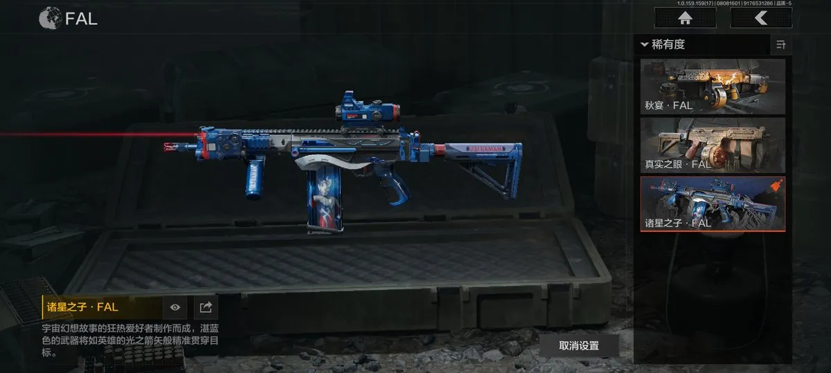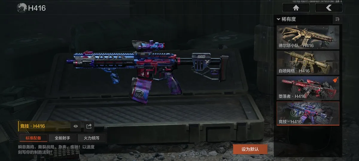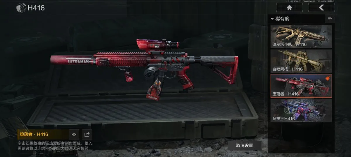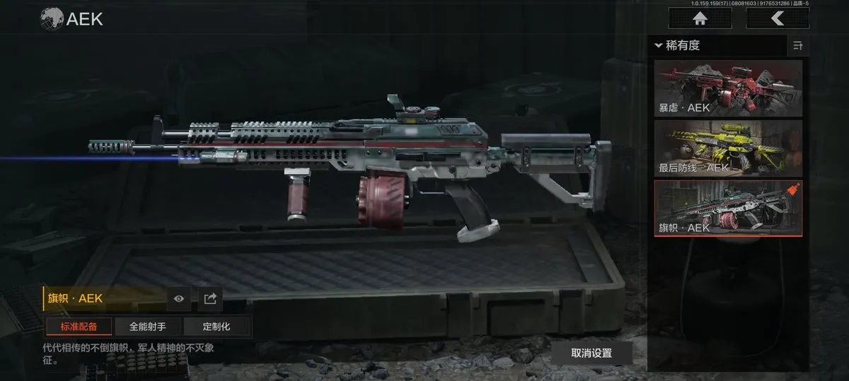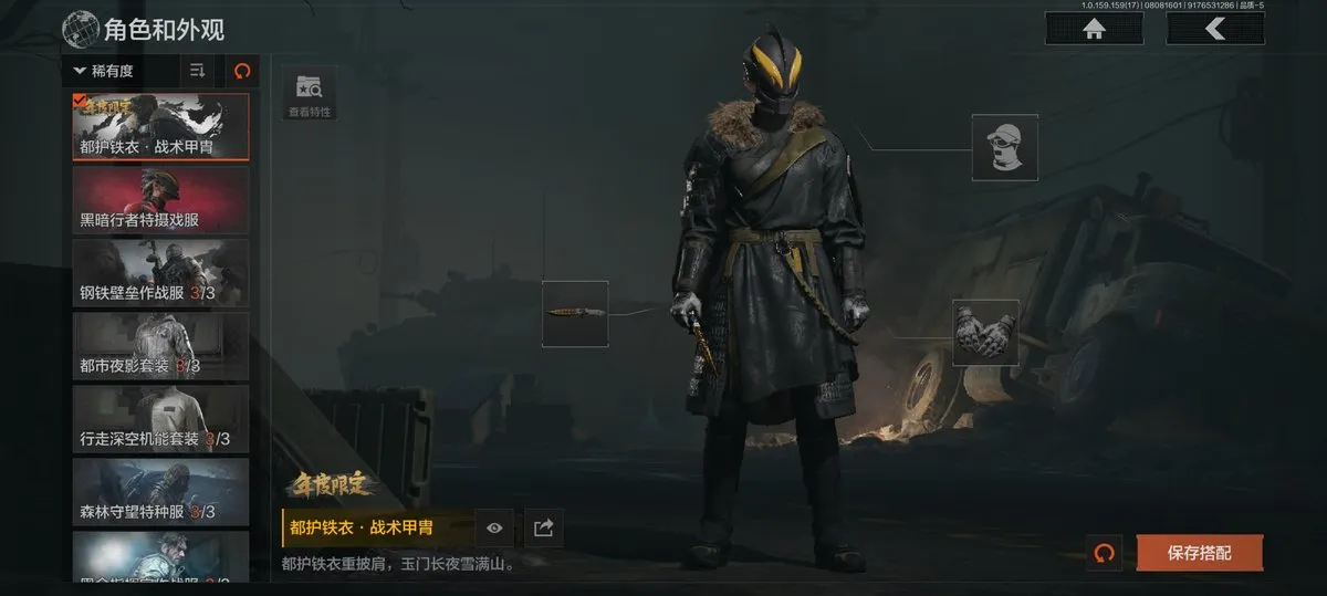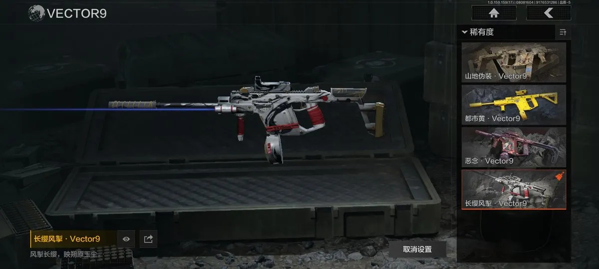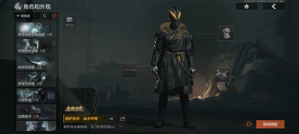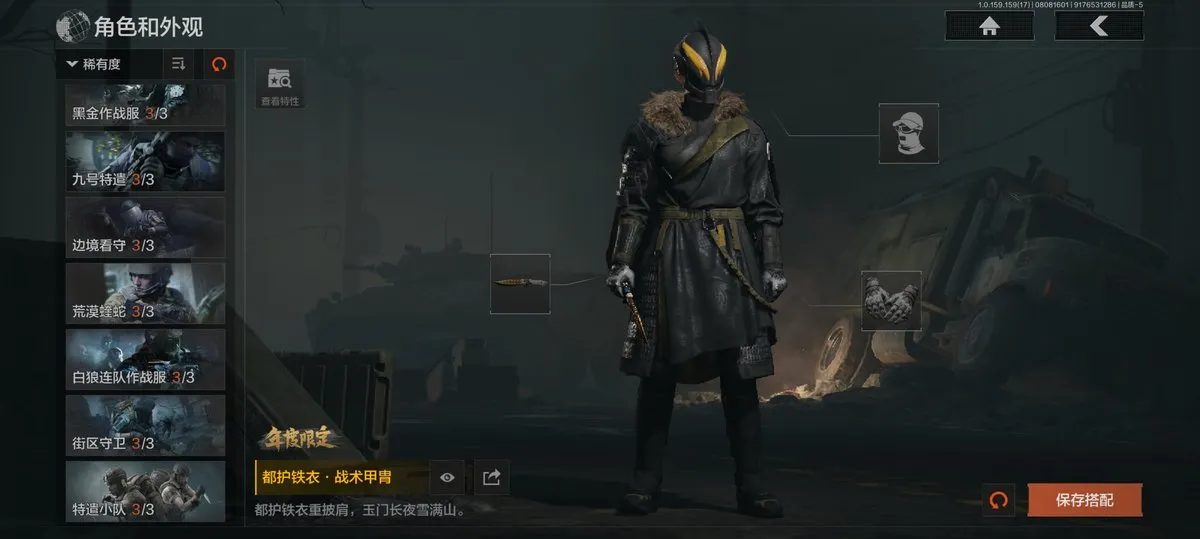 【近战武器】:赢家匕首,三尺万仞战术剑,贝利亚黄昏,明刀绣春,瑞兔折刀,野战折刀,突击匕首,工兵铲,来战开山刀;【手套】:玉鸾挂枝手套,战术甲胄防护手套【角色皮肤】:都护铁衣战术甲胄,黑暗行者特摄戏服,钢铁壁垒作战服,都市夜影套装,行走深空机能套装,森林守望特种服,黑金指挥官作战服,苏梅克制式服,林地作战服,黑金作战服,九号特遣,边境看守,荒漠蝰蛇,白狼连队作战服,街区守卫,特遣小队;【突击步枪】:火力倾泻AKM,棱光裂变AKM,来战AKM,竞技H416,堕落者H416,棱光裂变AK74N,白狼连队AK74N,赢家F2000,北国内卫MDR,骑士之剑AKS74U,火绒AKS74U,炎夏浪花AR57,棱光裂变AK102,秋宴FAL,火力倾泻AUG,棱光裂变ACE31,旗帜AEK,暴虐AEK,林地数码T03,森林迷彩T03,北国内卫AK12,绿松石数码Groza,绿松石数码T951,森林迷彩T951,绿松石数码9A91,四色花SCAR-L,07式林地迷彩QBZ191,缟兵玄墨AKM,自喷网格H416,德尔塔小队H416,来战AK74N,山地伪装AK74N,深暗星云M4A1,德尔塔小队M4A1,黑金国际M4A1,破军M4A1突击步枪,逆火MDR,龙影AKS74U,涂绘猎人AR57,诸星之子FAL,真实之眼FAL,极恶AUG,绿松石数码AUG,自喷网格AUG,骑士之剑ACE31,湖冰倒影ACE31,最后防线AEK,缟兵玄墨T03,玄戈梨花T03,北国内卫AN94,壁垒AN94,旱地迷彩AN94,盛冬AN94;【冲锋枪】:饰金MP5,龙威MP5,火力倾泻MP5,森林迷彩MP5,星云火花P90,无彩调色P90,都市黄Vector9,多边棱彩Vector45,北国内卫Vector45,沙色Vector45,滑雪季Suomi,北国内卫RPD,湖冰倒影MP5,缟兵玄墨MPX,玄戈梨花MPX,兔年春季限定,破军P90,滑雪季UMP45,自喷网格UMP45,苏梅克UMP45,长缨风掣Vector9,恶念Vector9,山地伪装Vector9,龙影Suomi;【射手步枪】:旗帜SVDS,多边棱彩MAC10,北国内卫MAC10,钢铁数码VSS,骑士之剑MK14,棱光裂变QBU191,绿松石数码QBU191,北国内卫AR30,北国内卫M16,骑士之剑VSS,缟兵玄墨VSS,玄戈梨花VSS,冰河碎影MK14,海洋数码MK14,山地伪装MK14,缟兵玄墨M110,玄戈梨花M110,破军M110射手步枪,黑金国际M110;【栓动步枪】:骑士之剑SJ16,绿松石数码SJ16,城市数码SJ16,棱光裂变莫辛,滑雪季莫辛,沙漠作战AX50,滑雪季M24,战术大师AR30,数码猎人M24;【轻机枪】:旗帜RPK16,娜迦RPK16,多边棱彩M249,长缨风掣RPK16,破军RPK16,壁垒RPK16;【霰弹枪】:多边棱彩M870,渡鸦M870,北国内卫MP133,胜利锋刃S12K,敬伙伴M16,雪地数码USAS12,四色花DP12,破军USAS12,营房暖冬USAS12,真实之眼SPR310;【卡宾枪】:绿松石数码SKS,多边棱彩M96,滑雪季BM59;【手枪】:碳黑M9A3,滑雪季F57,碳黑M300,赢家G18C,绿松石数码沙漠之鹰,北国内卫沙漠之鹰,雪山之王G18C;