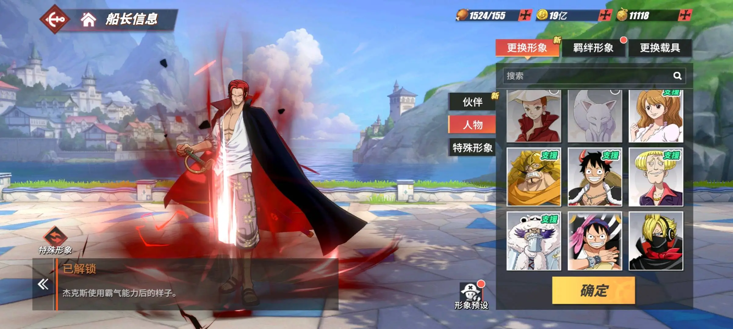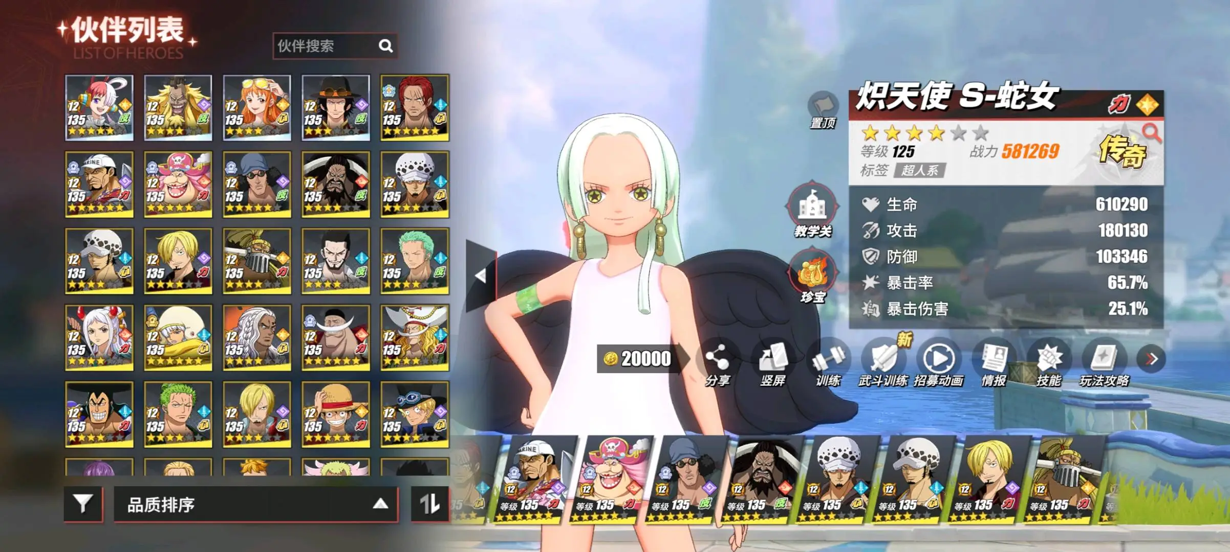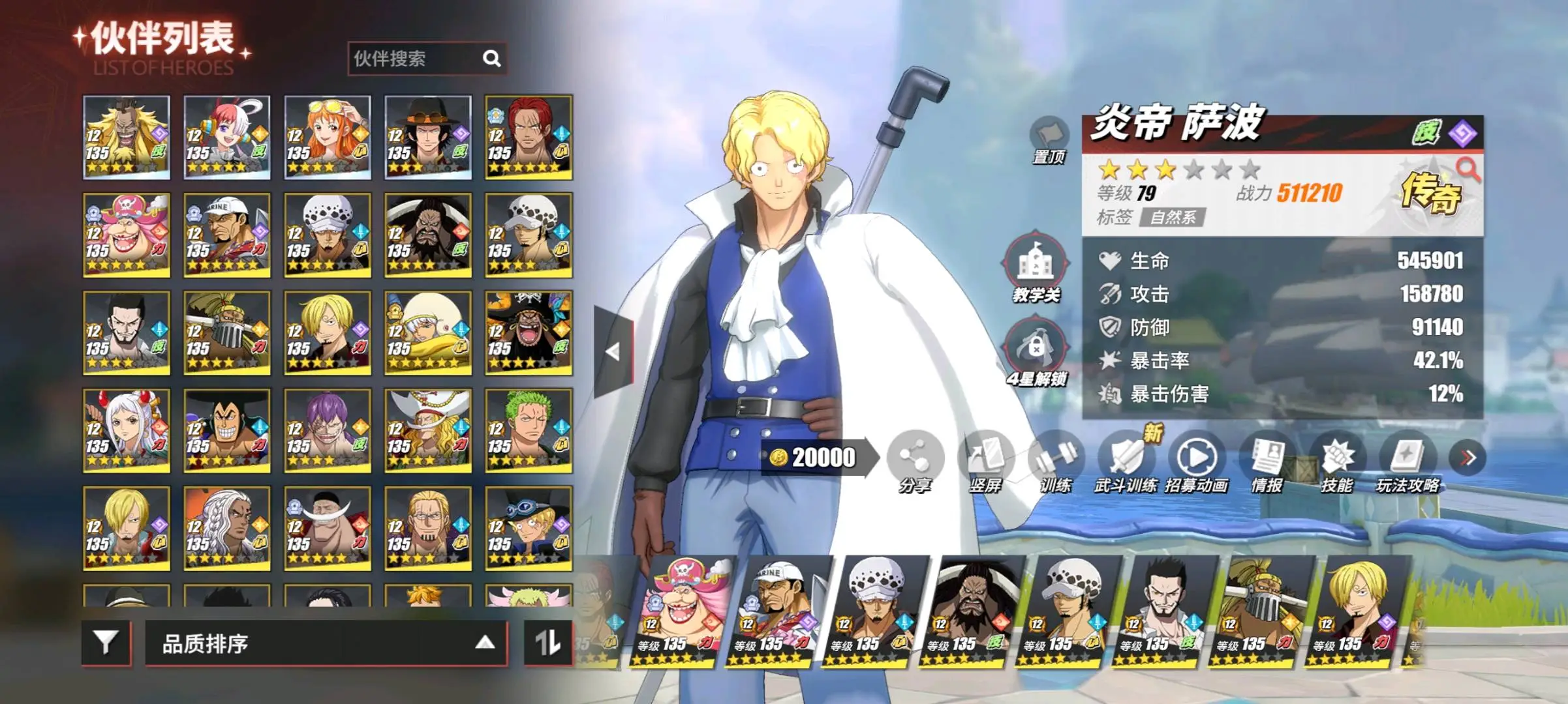 【安卓】 官服♥5挡路飞♥青年卡普♥小女帝♥炎帝萨博♥5个98友情♥155个角色