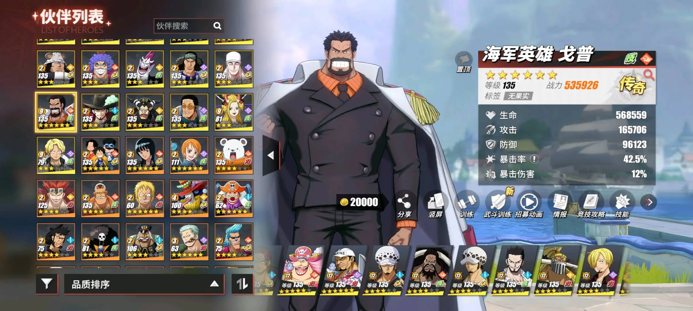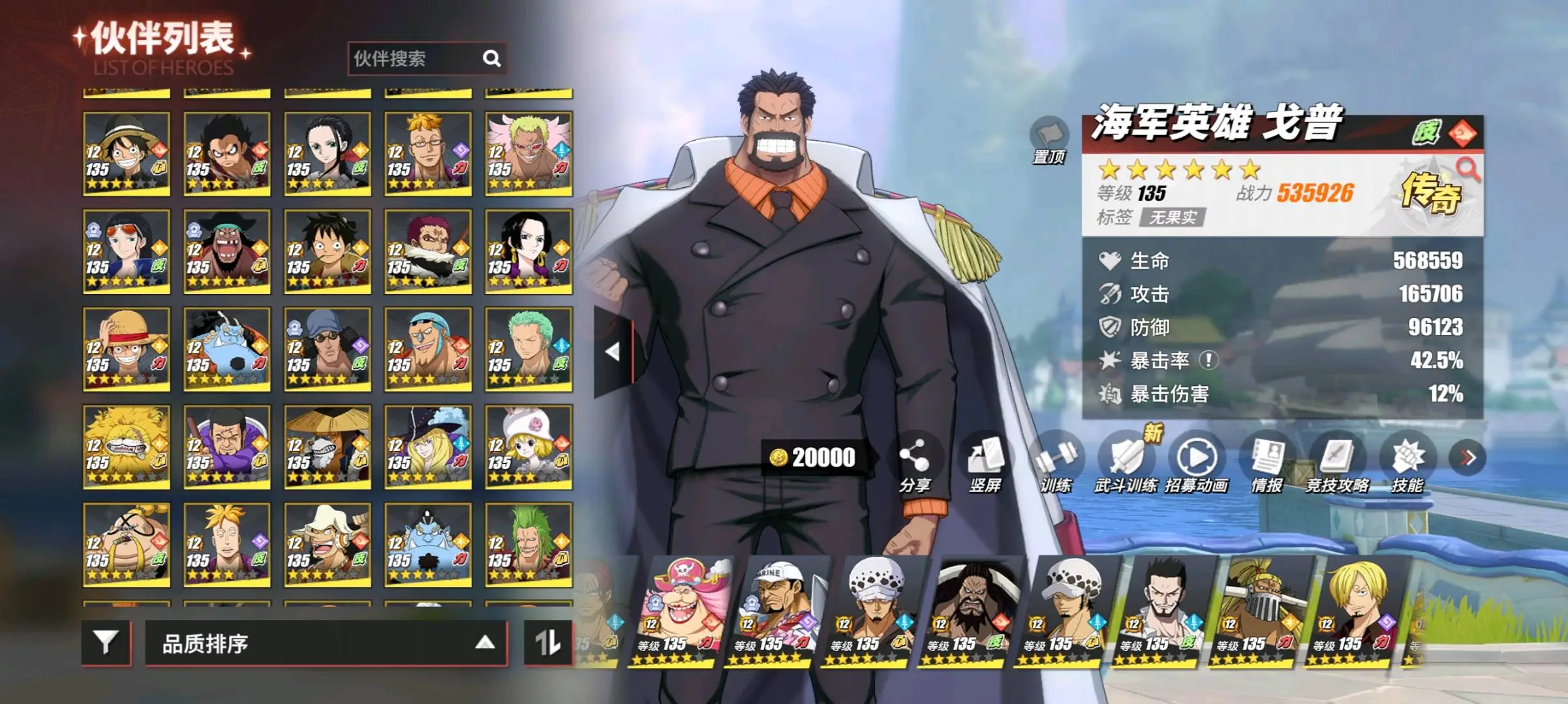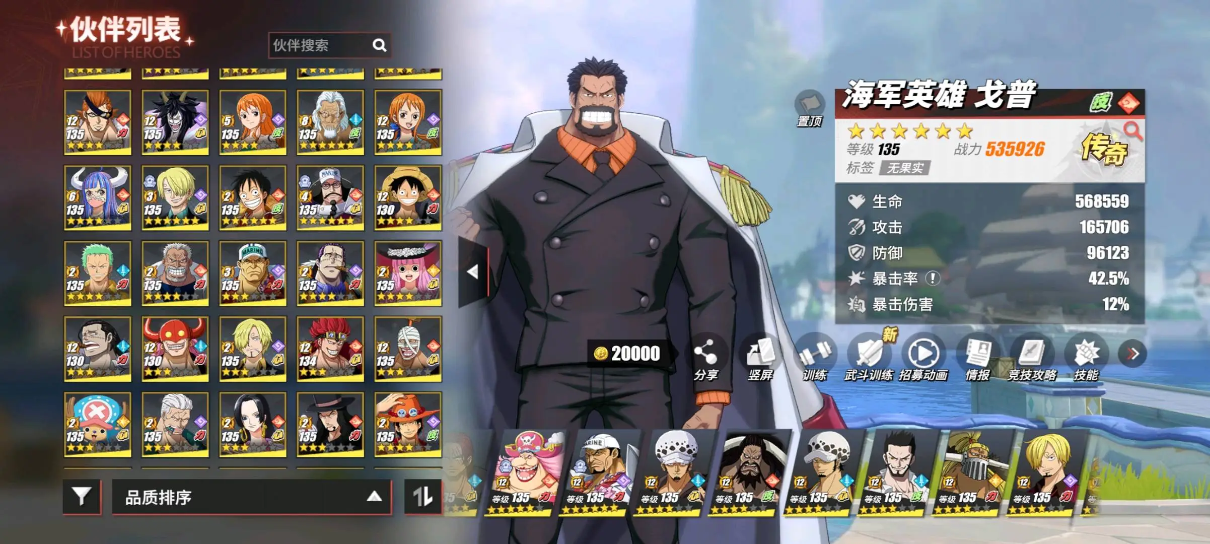 【安卓】 官服♥5挡路飞♥青年卡普♥小女帝♥炎帝萨博♥5个98友情♥155个角色