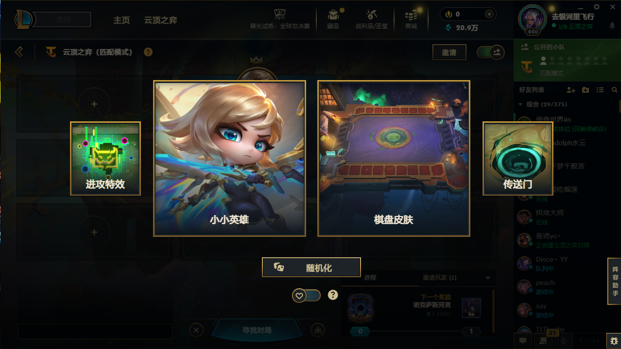 全英雄203皮 灵活铂金单双铂金 云顶之弈白银钢铁之翼小小凯尔+小小艾希+小小EZ+霓虹植物园棋盘+亚索的禅意庭院+凛冬之爪+三星小小英雄/三星进攻特效