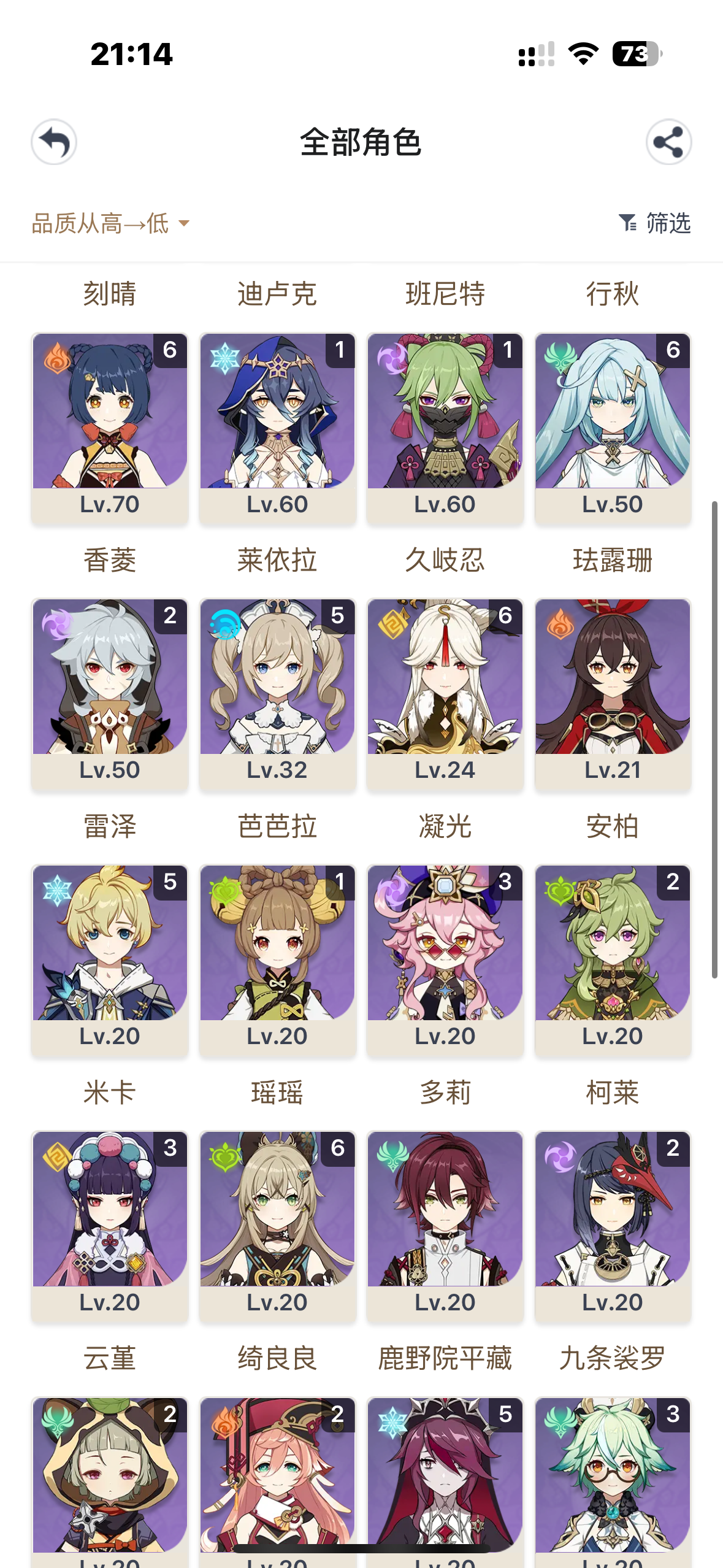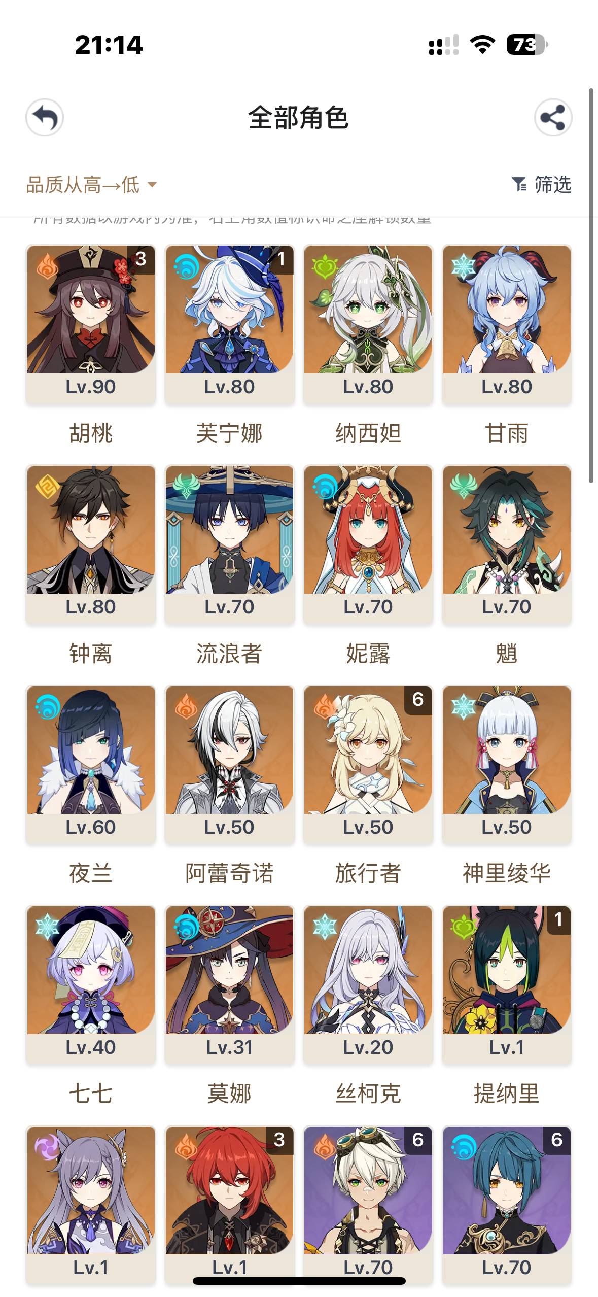 【全平台】 56级/官服/59名角色/3把专武/圣遗物小毕业/三命胡桃/一命草神/夜兰/钟离/丝柯克/仆人/