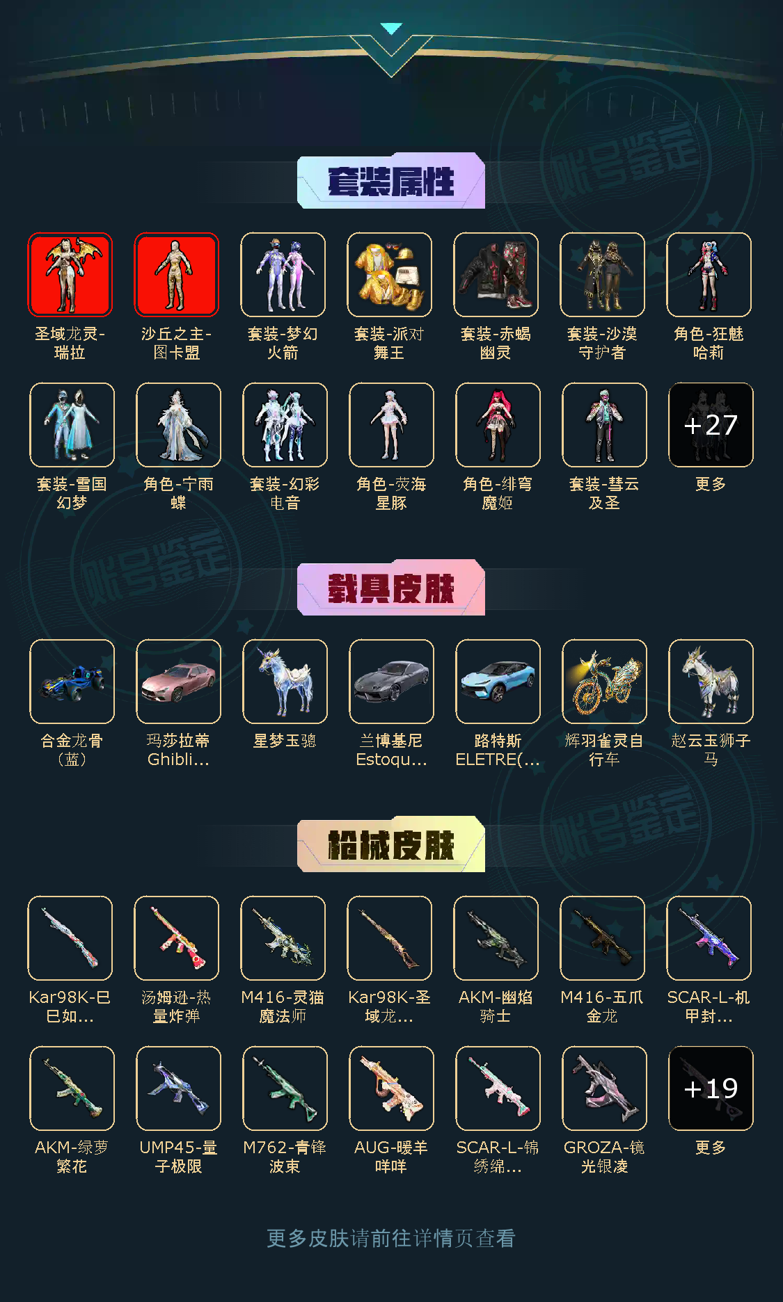 37粉,7载具,431套装,19王牌印记,传奇王牌18星历史最高段,202148热力值 撬棍-永恒法杖/M416-灵猫魔法师/蜜獾-荧海星豚/AKM-绿萝繁花/M416-电玩时刻/AKM-幽焰骑士/M416-五爪金龙/M762-青锋波束/AUG-暖羊咩咩/M416-墨龙九天/SCAR-L-锦绣绵绵/GROZA-镜光银凌/M762-甜蜜誓约/SCAR-L-机甲封神/SCAR-L-魔童闹海 哪吒/Mk14-甜梦熊击/DP-28-千金淑猫/M249-蓝莓炮弹/MG-36-沧焰双生/DP-28-豹影疾电/UMP45-量子极限/AKS-74U-星穹咏叹调/汤姆逊-热量炸弹/破片手榴弹-热量炸弹/爆炸猎弓-拳皇·狂花道/烟雾弹-猫咪绅士/破片手榴弹-粉粉猫爪/Kar98K-伏魔团/Kar98K-圣域龙灵/Kar98K-巳巳如意/AMR-智耀战神/兰博基尼Estoque(银翼灰)/玛莎拉蒂Ghibli(粉)/路特斯ELETRE(冰川蓝)/合金龙骨(蓝)/星梦玉骢/赵云玉狮子马/照夜玉狮子/辉羽雀灵自行车/