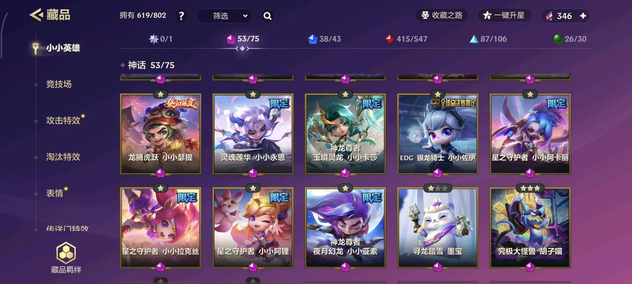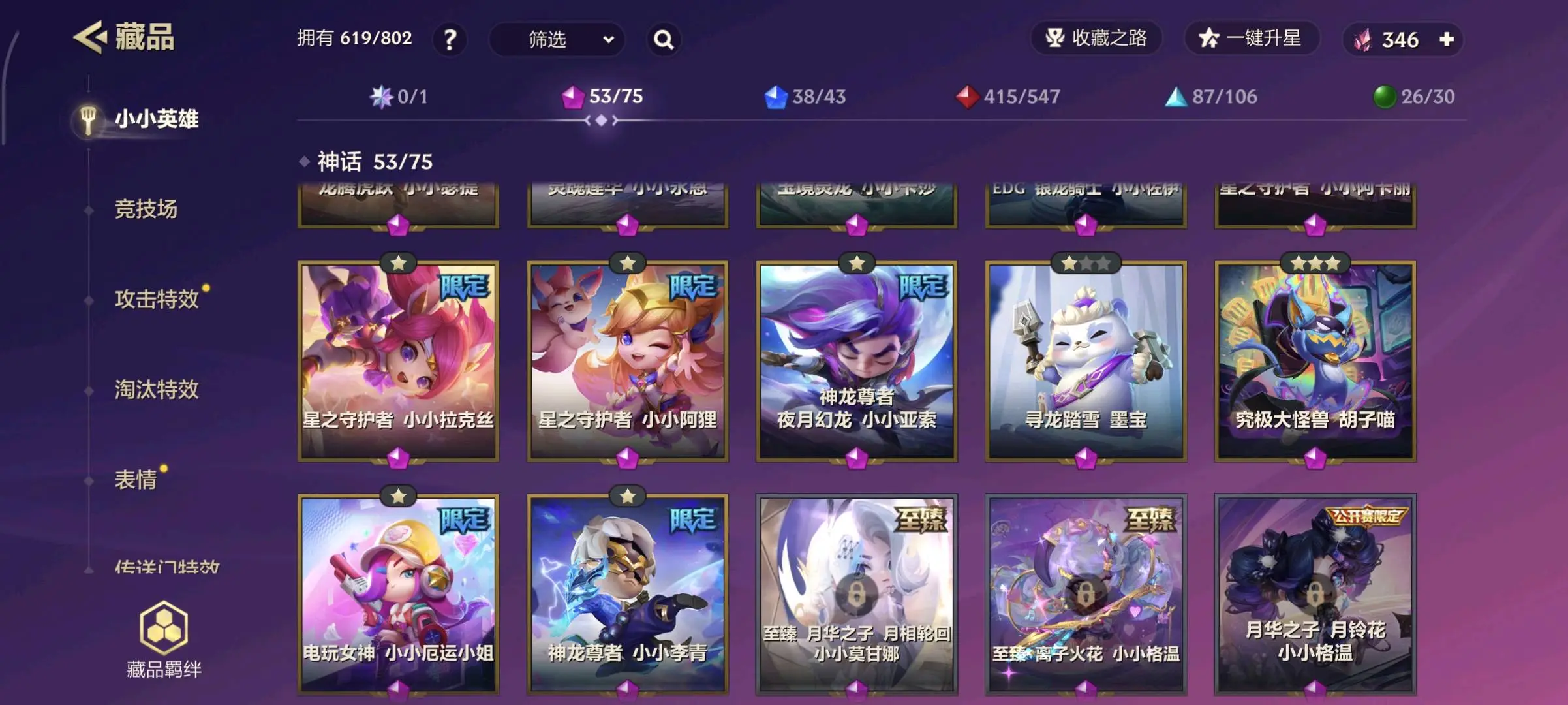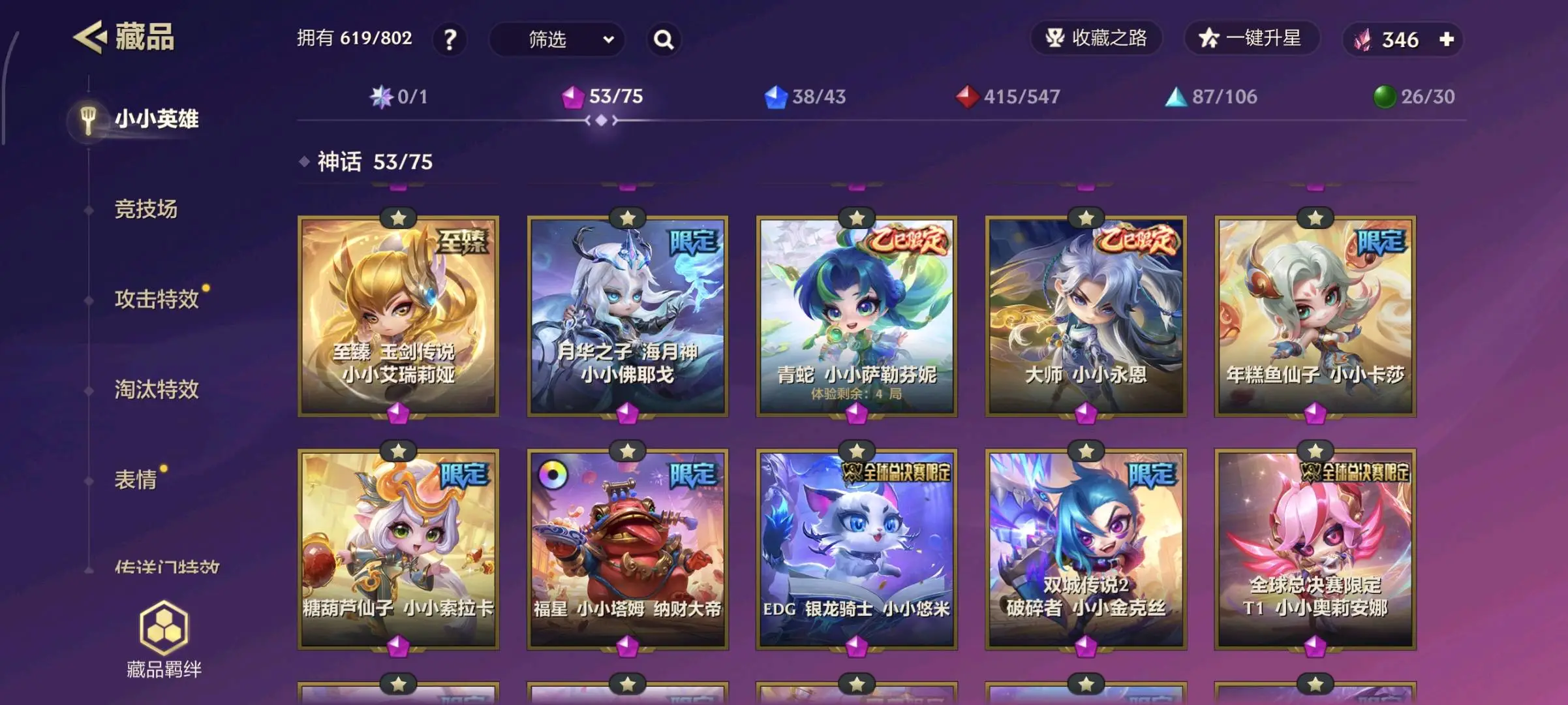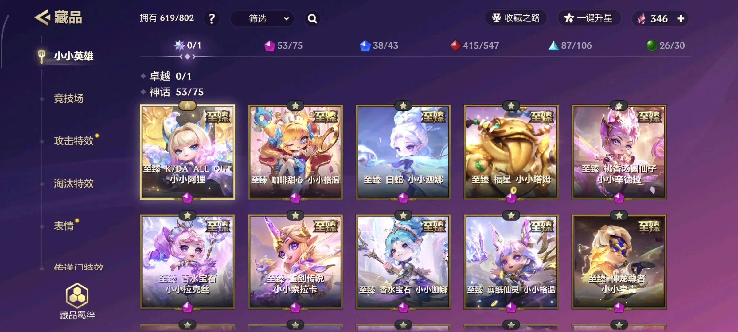 【安卓】 11至臻51神话⚡至臻迦娜辛德拉索拉卡塔姆拉克丝阿狸格温李青刀妹⚡7神话棋盘51神话攻击特效