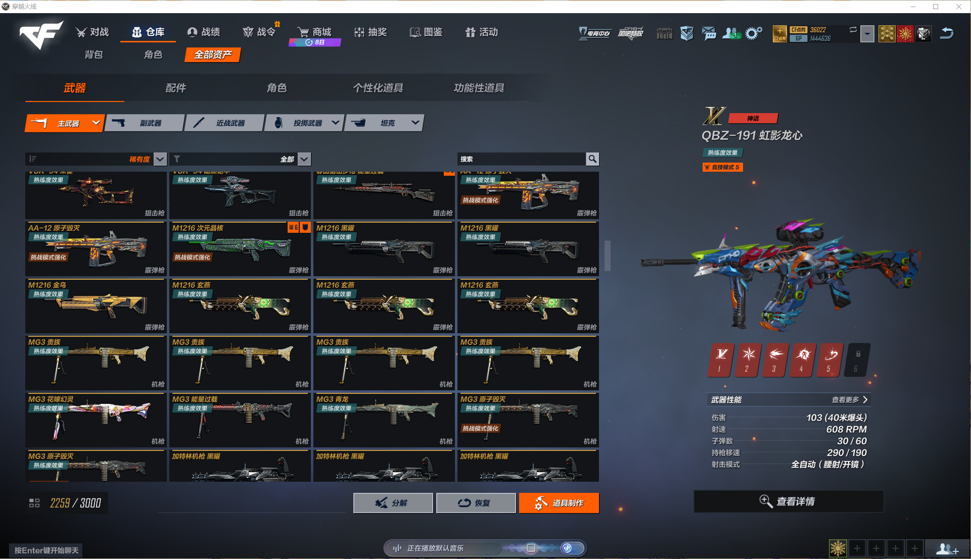 挑战模式:通用成长天赋130级满级,武器大师10级满级,步枪80级满级,霰弹枪80级满级,狙击枪80级满级,机枪73级,冲锋枪70级,复活币剩余2900多个!