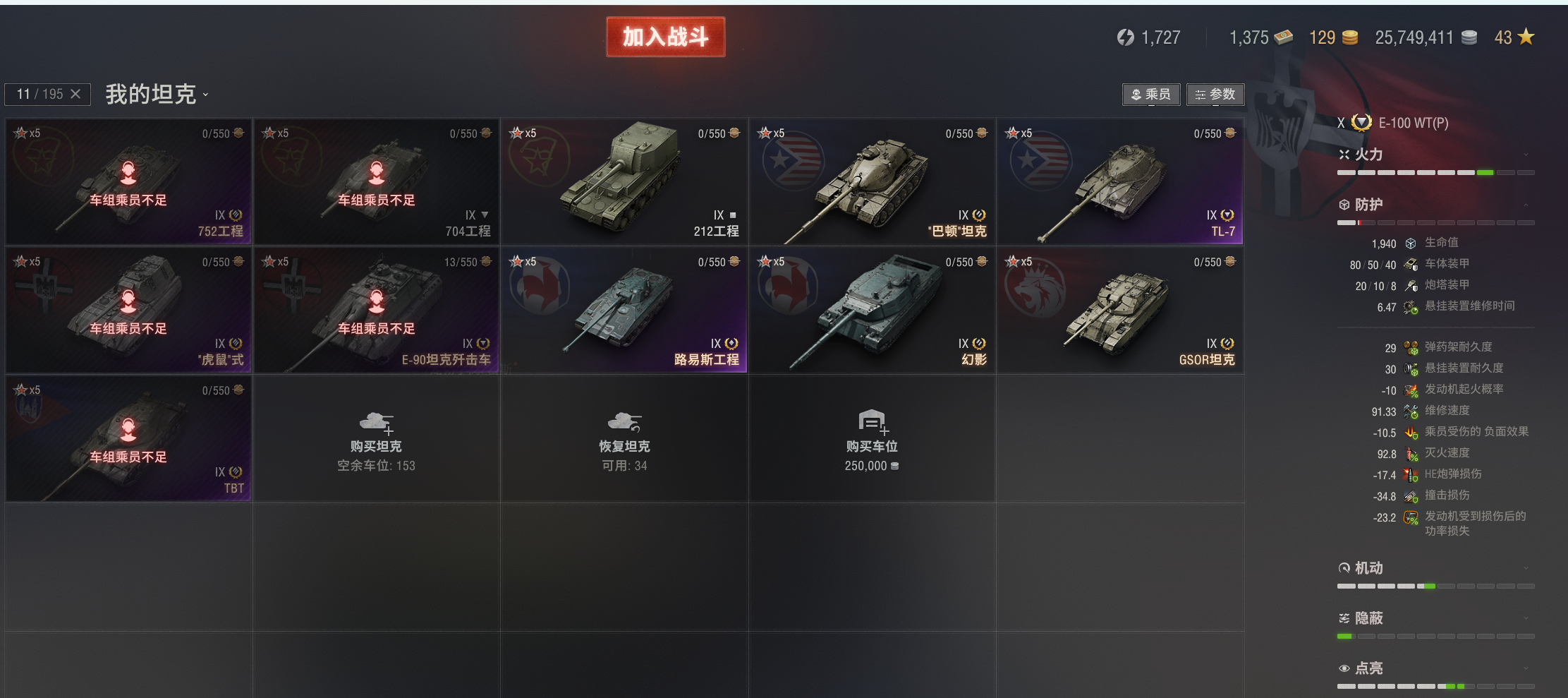 注意事项:1,进入游戏后,如果车辆情况不符。那是因为前面的玩家筛选了自己玩的坦克,其他的隐藏了。坦克显示栏,左下角小坦克标志,点进去把所有系别和级别选上,坦克就全部出来了。