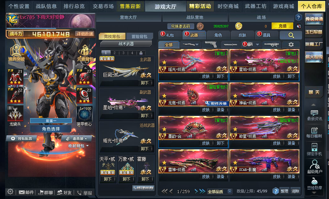 传说武器:瑶光终焉◆星珀终焉◆RPK主宰◆龙息·终焉◆神谕·终焉◆AK47主宰◆墨韵·合◆碎星·终焉◆SCAR-影魔◆无尽光影·终焉◆M4A1无限EX◆屠魔◆AK47天神◆万化主宰
