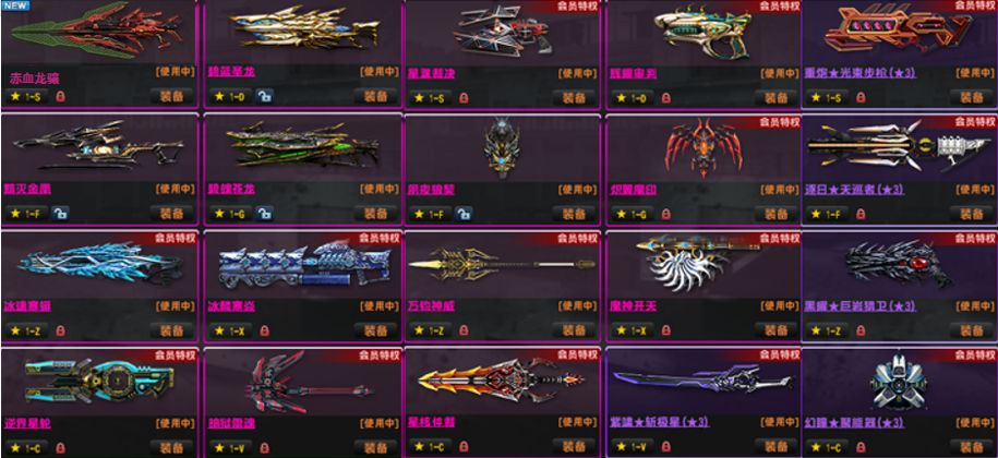 3.更新:17,21,24赛季武器!紫钻武器使用券!已去黑雾!赛季有第17,20,21,22和24!主要配件武器6阶段,其他最少5阶,强化武器全满!