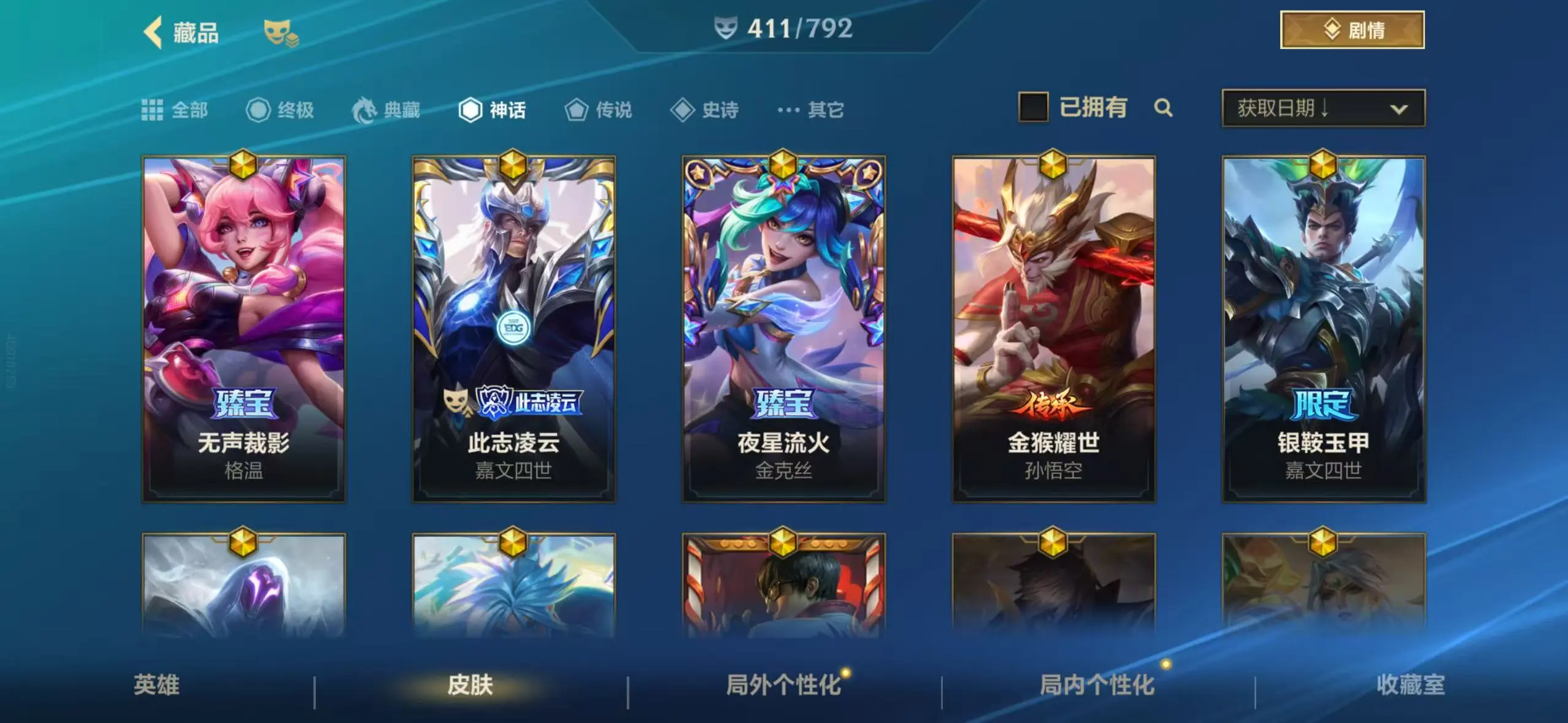 【苹果】 全英雄❤411皮❤国服格温❤兔年全套❤龙的传人❤金猴耀世❤夜星流火❤此志凌云❤战斗学院ez❤龙限泽丽