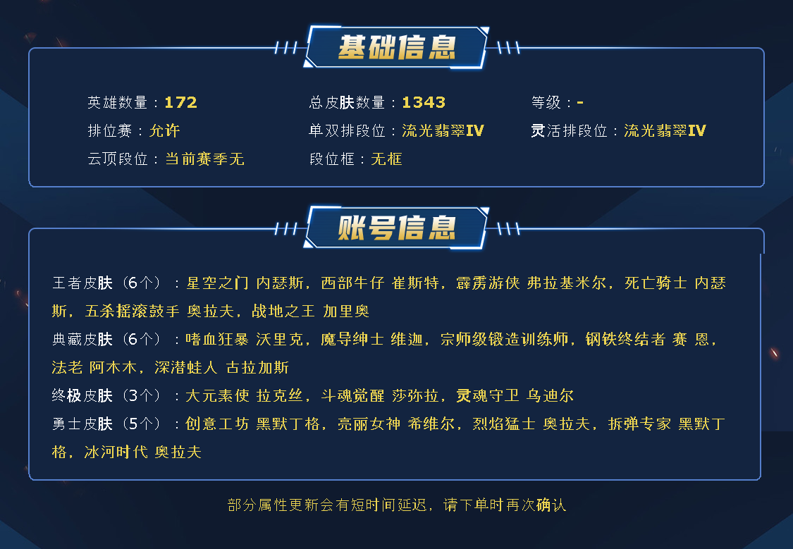 ~~喜欢记得收藏~~可排位~~1400皮全英雄~~租之前尽量查一下游戏ID,确保段位是您需要的,避免浪费您的时间~~请勿挂机逃跑故意送人头,谢谢合作,谢谢~~