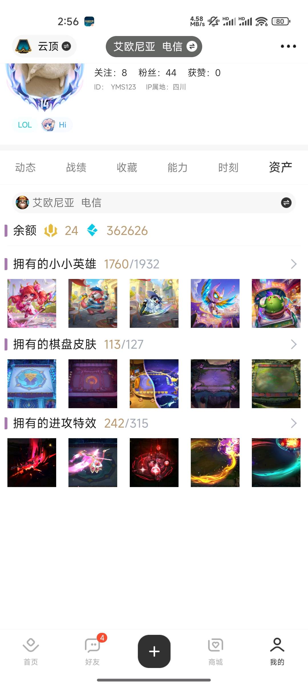 云顶、峡谷皮肤超级号1700原皮-晴天-艾欧尼亚-不朽阿狸-满终极皮肤-云顶65神话!