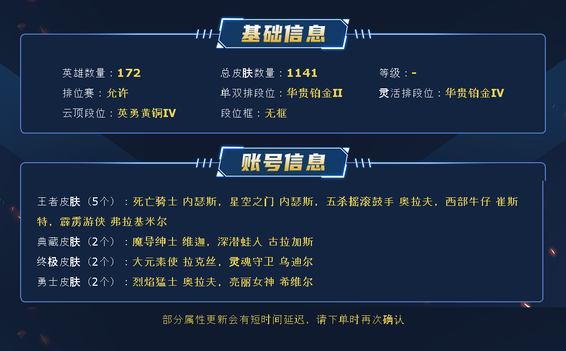 ~~喜欢记得收藏~~可排位~~1200皮全英雄~~租之前尽量查一下游戏ID,确保段位是您需要的,避免浪费您的时间~~请勿挂机逃跑故意送人头,谢谢合作,谢谢~~