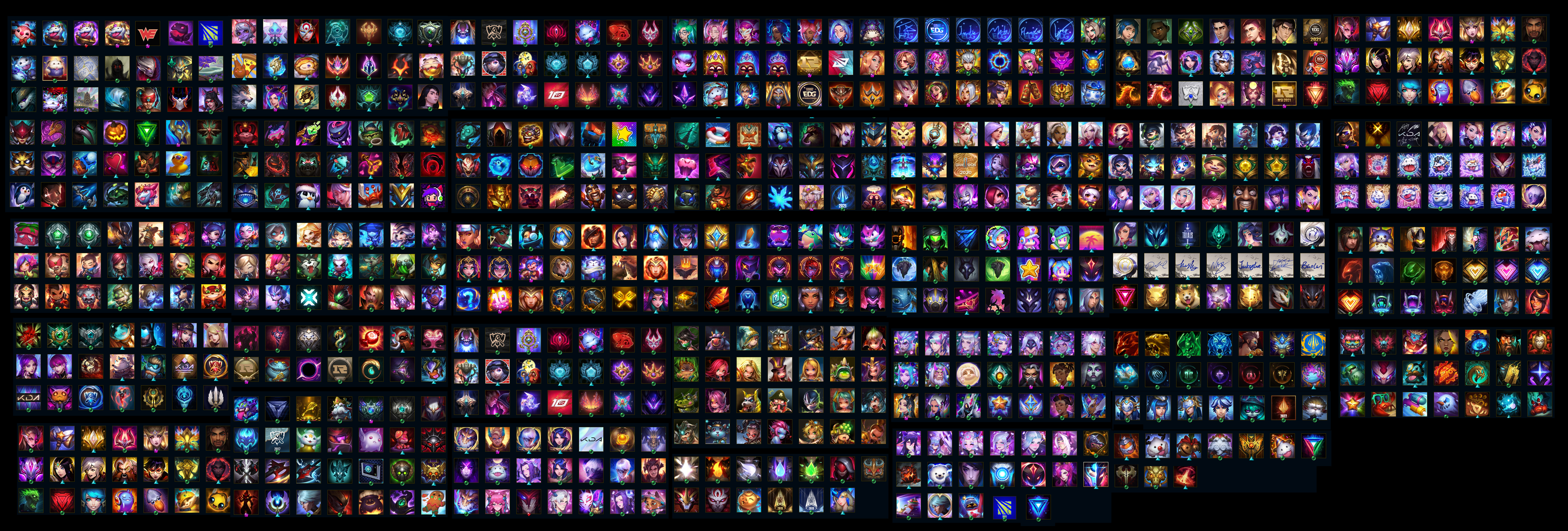 限定皮肤 哥特萝莉安妮、安妮梦游仙境、生化领主泰达米尔、青年瑞兹、创星之灵璐璐、舞会公主安妮、龙的传人李青、阿木木主人不要我了、暗杀星奥莉安娜、暗杀星蒙多、暗杀星努努和威朗普、暗杀星慎、暗杀星伊泽瑞尔、暗影沃里克、奥德赛吉格斯、北辰之威内瑟斯、冰封王子蒙多、冰雪风暴希维尔、冰雪节格雷福斯、冰雪节玛尔扎哈、冰雪节辛吉德、冰雪女神辛德拉、冰雪兽纳尔、冰雪驯鹿波比、碧玉之牙卡西奥佩娅、波比的巧克力工坊、伯爵卡萨丁、不给糖就捣蛋艾克、持胡萝卜的雪人易、穿星魔锋赵信、穿心之剑菲奥娜、春晖神女拉克丝、大魔法锅布里茨、大魔王提莫、电玩女神阿狸、电玩女神厄运小姐、电玩勇者锐雯、电玩战魂赫卡里姆、地底世界崔斯特、冬境仙灵索拉卡、冬季仙境奥莉安娜、冬季仙境卡尔玛、都铎王朝图奇、夺命美人卡特琳娜、DWG烬、DWG蕾欧娜、EDG厄斐琉斯、EDG佛耶戈、EDG格雷福斯、EDG悠米、EDG佐伊、防暴机器人布里茨、防暴士兵格雷福斯、防暴士兵辛吉德、防暴天使凯尔、福牛守护者嘉文四世、钢铁之翼艾尼维亚、广寒仙子嫦娥、冠军典狱长锤石、冠军掠夺者卡兹克、冠军蔷薇乐芙兰、冠军之箭艾希、冠军之矛卡莉丝塔、冠军之刃锐雯2016、冠军之血希瓦娜、冠军之隐劫、冠军之志瑞兹、鬼影森森茂凯、鬼影重重魔腾、海贼瑞兹、海之歌奈德丽、海之歌泽丽、寒冬精灵璐璐、红桃杰克崔斯特、虎痴之拳蔚、胡桃夹子萨科、IG艾瑞莉娅、IG菲奥娜、IG卡蜜尔、IG卡莎、IG乐芙兰、IG洛、惊悚派对阿木木、惊悚派对费德提克、警用试作体K9内瑟斯、金猪烈焰瑟庄妮、克格汪、克烈古拉伯爵、狂心冰王图奇、蓝色忧郁崔斯特、烈焰美人薇恩、灵魂收割者索拉卡、灵能特工易、美猴王孙悟空、魅惑女巫崔丝塔娜、魅惑女巫厄运小姐、魅惑女巫菲奥娜、魅惑女巫迦娜、魅惑女巫莫甘娜、魅惑女巫奈德丽、魅惑女巫悠米、蒙多蒙多、密林猎手提莫、觅心猎手薇恩、觅心萝莉金克丝、觅心猫猫悠米、觅心魔灵奥莉安娜、觅心女王艾希、觅心游侠卢锡安、觅心之翼奎因、纳财大帝塔姆、南瓜头费德提克、南天之怒沃里克、你看见过我的熊猫吗安妮、女猎手希维尔、平安夜女神娑娜、魄罗骑士瑟庄妮、圣诞捣蛋鬼金克丝、圣诞精灵崔丝塔娜、圣诞开心鬼提莫、圣诞狂欢基兰、圣诞狂欢努努和威朗普、圣诞老人布隆、圣诞老人德莱文、圣诞老人古拉加斯、圣诞糖果棒厄运小姐、圣诞玩偶波比、圣诞驯鹿克格莫、胜利凤凰艾尼维亚、胜利女神奥莉安娜、胜利女神希维尔、胜利枪神格雷福斯、胜利枪神卢锡安、胜利之剑亚托克斯、胜利之树茂凯、神凰行者烈羽焰凰霞、神凰行者幽羽玄凰萨勒芬妮、神龙烈焰金克丝、神龙之翼库奇、水晶玫瑰迦娜、水晶玫瑰婕拉、司马懿仲达、死亡誓约卡特琳娜、死亡誓约维克托、SKTT1艾克、SKTT1阿利斯塔、SKTT1奥拉夫、SKTT1阿兹尔、SKTT1贾克斯、SKTT1劫、SKTT1婕拉、SKTT1烬、SKTT1卡莉丝塔、SKTT1雷克顿、SKTT1李青、SKTT1娜美、SKTT1瑞兹、SKTT1薇恩、SKTT1辛德拉、SKTT1伊莉丝、SKTT1扎克、送披萨的小姐姐希维尔、SSG嘉文四世、SSG洛、SSG纳尔、SSG塔莉垭、SSG霞、SSG伊泽瑞尔、SSW锤石、SSW雷恩加尔、SSW泰隆、SSW图奇、SSW辛吉德、碎心之拳蔚、糖果使徒费德提克、甜心宝贝安妮、甜心宝贝娑娜、甜心之翎洛、甜心之羽霞、替父从军花木兰、外星装甲库奇、卧虎藏龙贾克斯、无头骑士赫卡里姆、小恶魔菲兹、邪恶圣诞老人维迦、幸福女神乐芙兰、星之守护者伊泽瑞尔、星之守护者佐伊、喜庆之树茂凯、雪默丁格、雪球也能爆炸吉格斯、雪装奈德丽、野兽猎人德莱文、野兽猎人瑟庄妮、野兽猎人泰达米尔、英勇玩具兵普朗克、泳池派对奥莉安娜、泳池派对厄运小姐、泳池派对菲奥娜、泳池派对格雷福斯、泳池派对嘉文四世、泳池派对凯特琳、泳池派对雷克顿、泳池派对蕾欧娜、泳池派对李青、泳池派对普朗克、泳池派对塔里克、泳池派对塔莉垭、泳池派对佐伊、永恒之森乐芙兰、勇者阿狸、勇者奈德丽、幽梦玫瑰辛德拉、玉剑传说舞剑仙、玉剑传说无影、玉净夜叉凯特琳、御星魔矢艾希、战场BOSS吉格斯、张辽文远、征服者阿利斯塔、征服者卡尔玛、征服者韦鲁斯、制胜金球拉莫斯、制胜金靴李青、紫金罗刹莫甘娜、天龙之子斯莫德、胜利之王泰达米尔、胜利女神娑娜、胜利剑圣易、点心宝贝阿木木