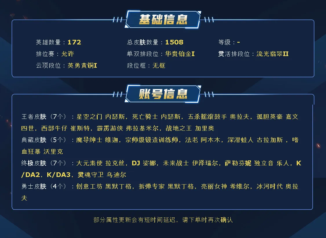~~喜欢记得收藏~~可排位~~1600皮全英雄~~租之前尽量查一下游戏ID,确保段位是您需要的,避免浪费您的时间~~请勿挂机逃跑故意送人头,谢谢合作,谢谢~~