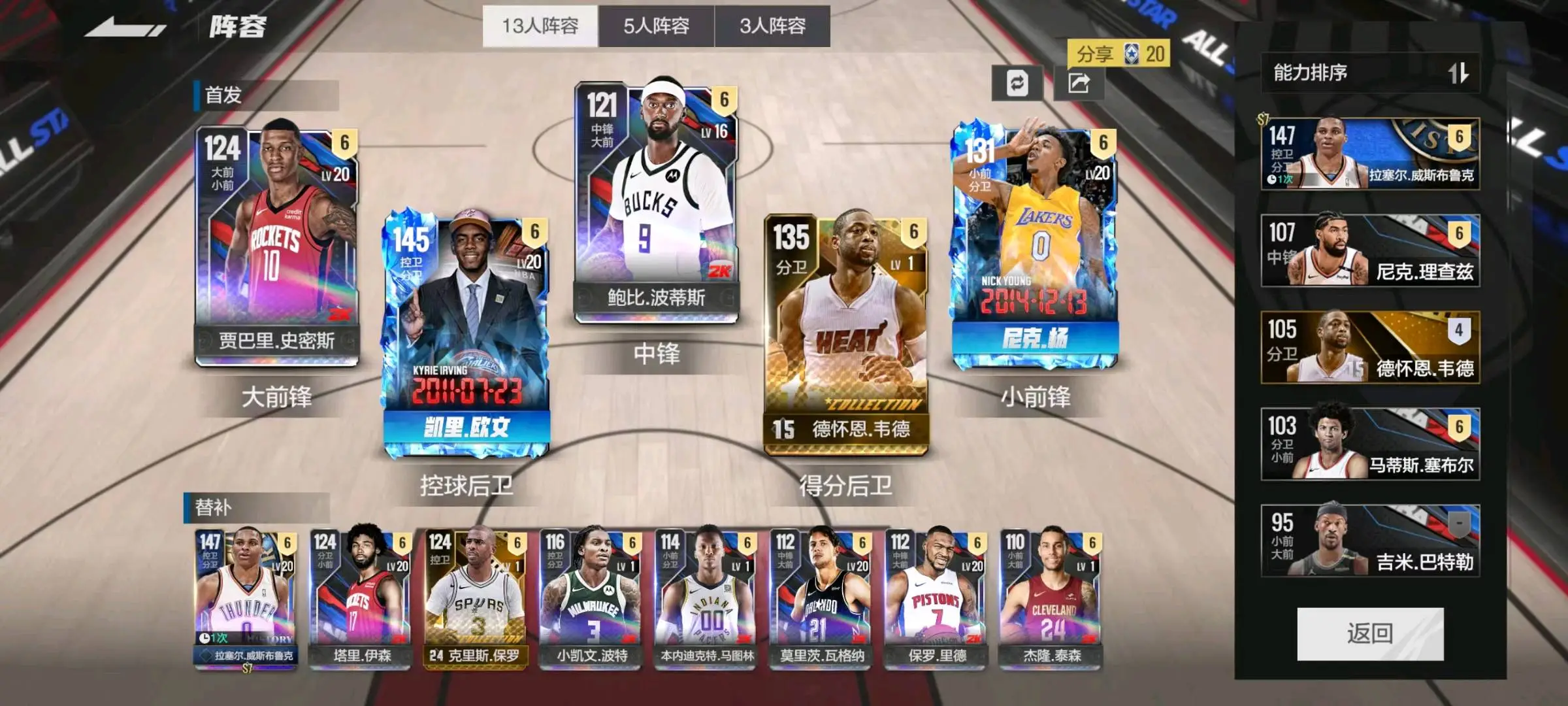 满突时刻尼克杨+时刻欧文❤️满突韦德+保罗+伊森+史密斯+一堆满突配菜❤️服饰超多大衣柜篮球之冠