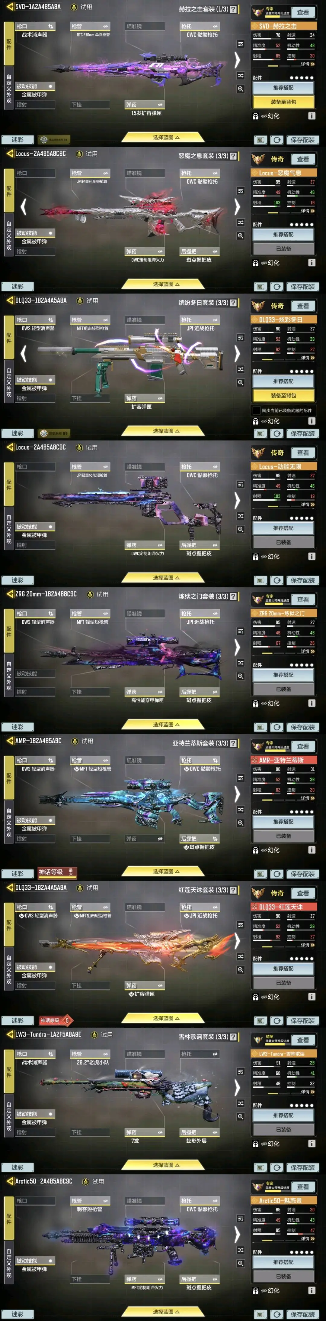 永别 星月夜 天策含光 万刃灼锋 苍穹 红莲天诛 神圣惩戒 冰霜巨龙 暗夜奏鸣曲 无镜空刃 双刃剑圣