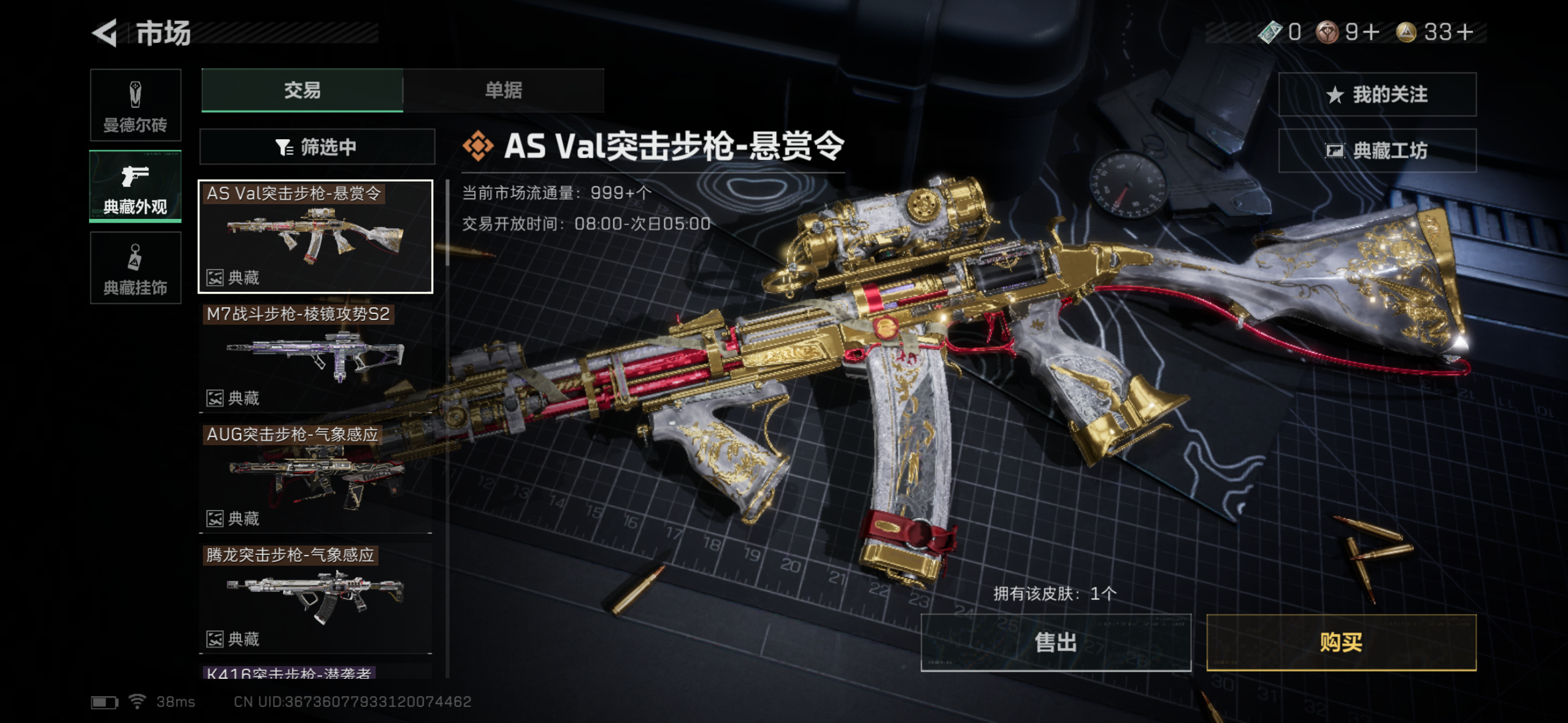 【2395.36w哈夫币】至臻❤️四红五刀四砖皮+威龙蛟龙❤️M7棱镜/AS悬赏令/腾龙+AUG气象❤北极星/信条/影锋/电锯