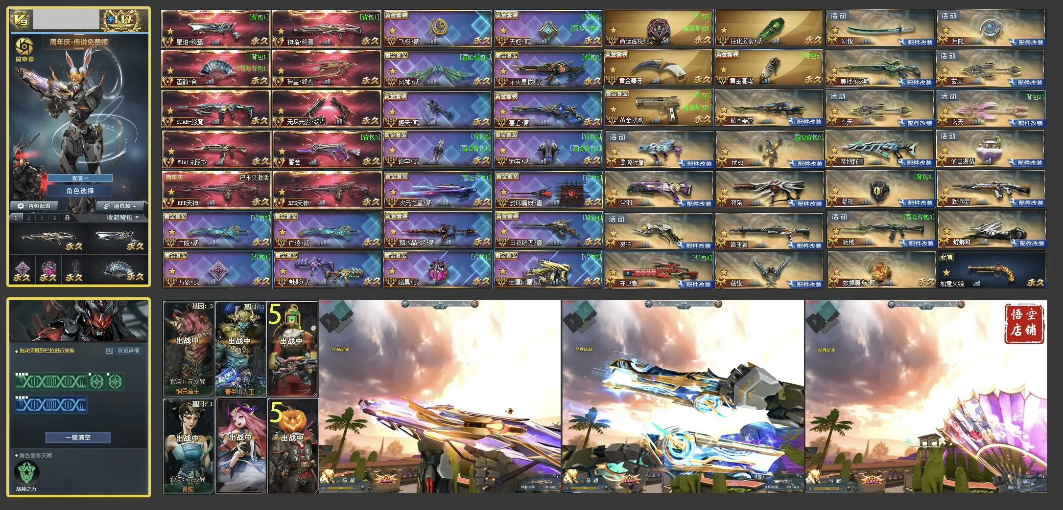 <大头>配置基本齐全 阿瑞斯战神之力 丧钟罐子头都是五级 夜枭满 裂隙行者满 魔典壹 双广陵贰 星核贰 风神贰 大嘴嘟嘟 三玄天带格挡发射 虚空漫游123 镇压者13 灵狩带盾激光 凝视13 战术命运透视贰 狂化激素贰等