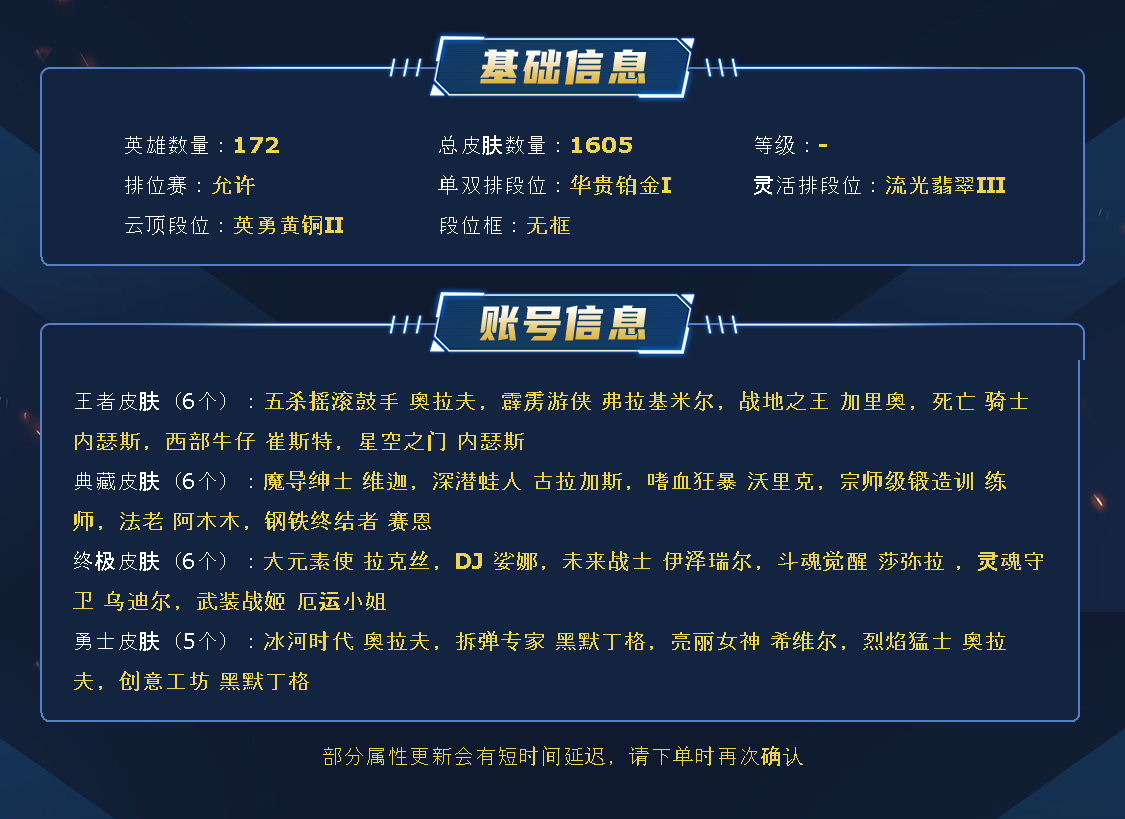 ~~喜欢记得收藏~~可排位~~1700皮全英雄~~租之前尽量查一下游戏ID,确保段位是您需要的,避免浪费您的时间~~请勿挂机逃跑故意送人头,谢谢合作,谢谢~~