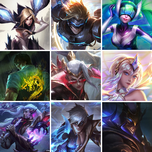 【重要皮肤】至高天凯尔至臻 西部魔影伊芙琳至臻 天龙之子伊泽瑞尔至臻 神龙尊者比翼之龙洛至臻 魂蔷薇烈娜塔至臻 剪纸仙灵希维尔至臻 北极星使者沃里克至臻 灵魂莲华易至臻 幻灵战斗猫金克丝至臻 青花瓷拉克丝至臻 神凰行者烈羽焰凰霞至臻 真实伤害亚索至臻 真实伤害赛娜至臻 灵能特工伊泽瑞尔至臻 王国机神玄武盖伦至臻 暗星墨菲特至臻 神龙尊者炎龙瑟提至臻 飞升战神潘森至臻 KDA二代卡莎至臻 KDA一代卡莎至臻 烈焰美人薇恩至臻 源计划正义艾瑞莉娅至臻 腥红之月亚托克斯至臻 殿堂传奇薇恩 灰烬征服者潘森 灰烬杀手塞拉斯 海克斯科技安妮 海克斯科技瑟庄妮 海克斯科技雷克顿 海克斯科技克格莫 海克斯科技斯维因 海克斯科技吉格斯 海克斯科技玛尔扎哈 海克斯科技波比 海克斯科技嘉文四世 海克斯科技阿利斯塔 海克斯科技阿木木 海克斯科技崔丝塔娜 水晶圣骑艾希 暗星科加斯 恐惧新星德莱厄斯 摄魂使者薇恩 新创战纪希维尔 胜利之王泰达米尔 胜利巨口克格莫 舞会公主安妮 生化领主泰达米尔 荣誉使者玛尔扎哈 勇敢的心德莱厄斯 电玩勇者锐雯 电玩女神阿狸 海珀利安小队Z01猎户座卢锡安 玉剑传说无劫 玉剑传说舞龙卫 黎明使者薇恩 龙的传人李青 银龙裁决泰隆 天龙之子斯莫德 替父从军花木兰 春晖神女拉克丝 你看见过我的熊猫吗安妮 北辰之威内瑟斯 南天之怒沃里克 美猴王孙悟空 定海神珍孙悟空 广寒仙子嫦娥 虎痴之拳蔚 张辽文远 烈焰美人薇恩 纳财大帝塔姆 胜利女神瑟庄妮 胜利机器人布里茨 胜利女神奥莉安娜 胜利枪神格雷福斯 胜利枪神卢锡安 胜利之剑亚托克斯 甜心之羽霞 甜心宝贝安妮 觅心魔灵奥莉安娜 觅心女王艾希 觅心之翼奎因 觅心猎手薇恩 幽梦玫瑰泰隆 圣诞捣蛋鬼金克丝 冰雪女神辛德拉 魄罗骑士瑟庄妮 平安夜女神娑娜 圣诞糖果棒厄运小姐 魅惑女巫崔丝塔娜 魅惑女巫伊莉丝 灵魂收割者索拉卡 小恶魔菲兹 泳池派对佐伊 泳池派对厄运小姐 泳池派对塔里克 泳池派对格雷福斯 泳池派对李青 泳池派对雷克顿 电玩战魂赫卡里姆 DRX亚托克斯 DWG烬 FPX锤石 FPX薇恩 iG洛 iG卡莎 SSG洛 SSG纳尔 SKTT1烬 SKTT1阿利斯塔 SKTT1卡莉丝塔 SKTT1瑞兹 SKTT1阿兹尔 SKTT1伊莉丝 SKTT1雷克顿 SSW锤石 SSW雷恩加尔 SSW图奇 SSW辛吉德 SKTT1贾克斯 SKTT1劫 SKTT1李青 SKTT1薇恩 暗杀星蒙多 暗杀星努努和威朗普 暗杀星伊泽瑞尔 Fnatic迦娜 Fnatic库奇 Fnatic古拉加斯 Fnatic嘉文四世 Fnatic卡尔萨斯 冰雪节格雷福斯 冰雪节玛尔扎哈 冰雪节辛吉德 冰雪兽纳尔 防暴士兵辛吉德 防暴天使凯尔 钢铁之翼艾尼维亚 冠军典狱长锤石 冠军之矛卡莉丝塔 冠军之血希瓦娜 冠军之隐劫 冠军之志瑞兹 鬼影森森茂凯 鬼影重重魔腾 海贼瑞兹 胡桃夹子萨科 警用试作体K9内瑟斯 密林猎手提莫 南瓜头费德提克 女猎手希维尔 圣诞精灵崔丝塔娜 圣诞开心鬼提莫 圣诞狂欢基兰 圣诞狂欢努努和威朗普 圣诞老人古拉加斯 圣诞玩偶波比 圣诞驯鹿克格莫 糖果使徒费德提克 无头骑士赫卡里姆 喜庆之树茂凯 邪恶圣诞老人维迦 幸福女神乐芙兰 雪默丁格 野兽猎人德莱文 野兽猎人瑟庄妮 野兽猎人泰达米尔 征服者卡尔玛 征服者韦鲁斯 暗影沃里克 冠军之箭艾希 机械迷城加里奥 阿木木主人不要我了 波比的巧克力工坊 都铎王朝图奇 十五周年纪念希维尔 十周年纪念安妮 神凰行者瑞羽圣凰艾尼维亚 胜利凤凰艾尼维亚 斗魂觉醒莎弥拉 DJ娑娜 大元素使拉克丝 灵魂守卫乌迪尔 未来战士伊泽瑞尔 武装战姬厄运小姐