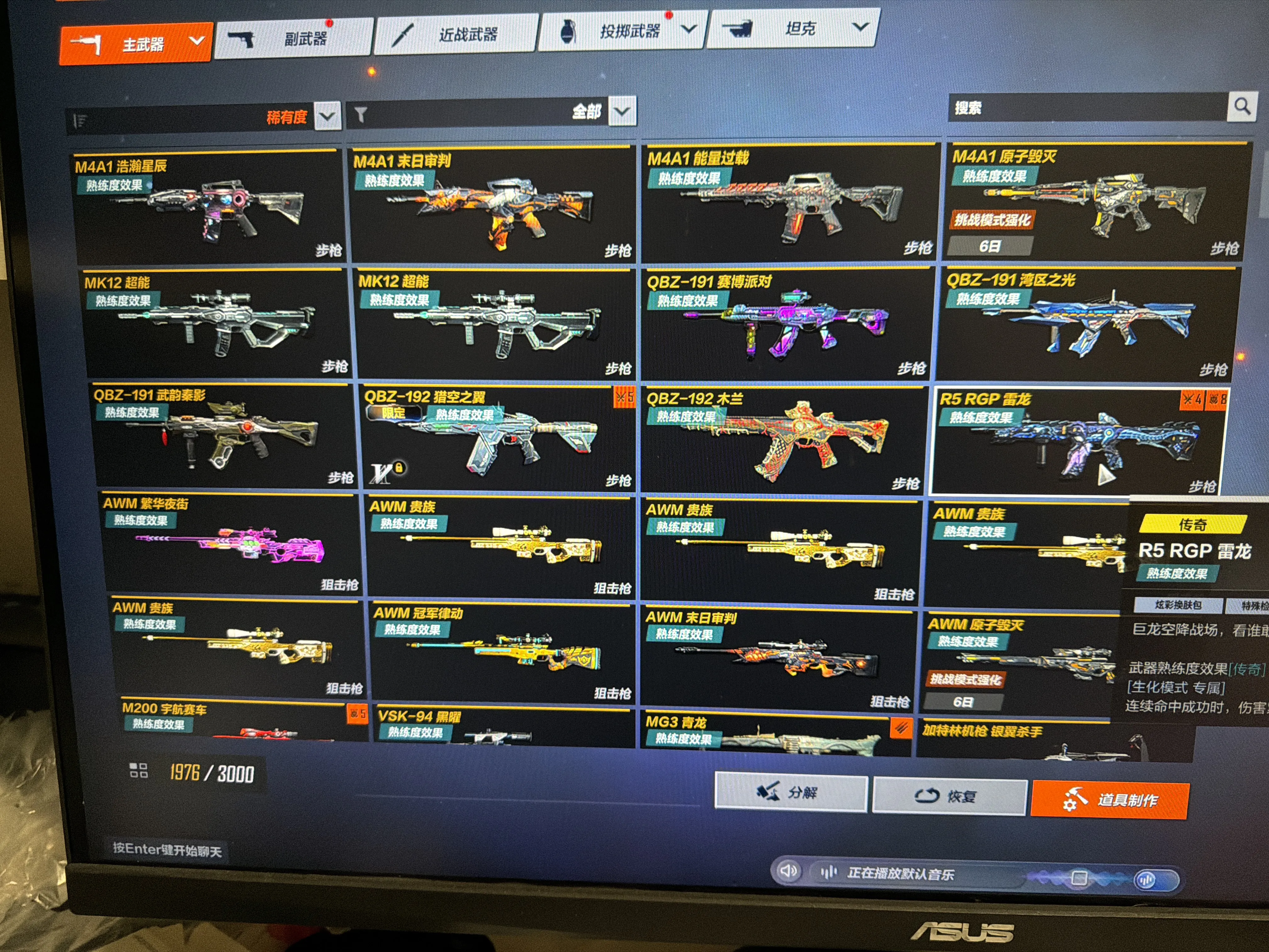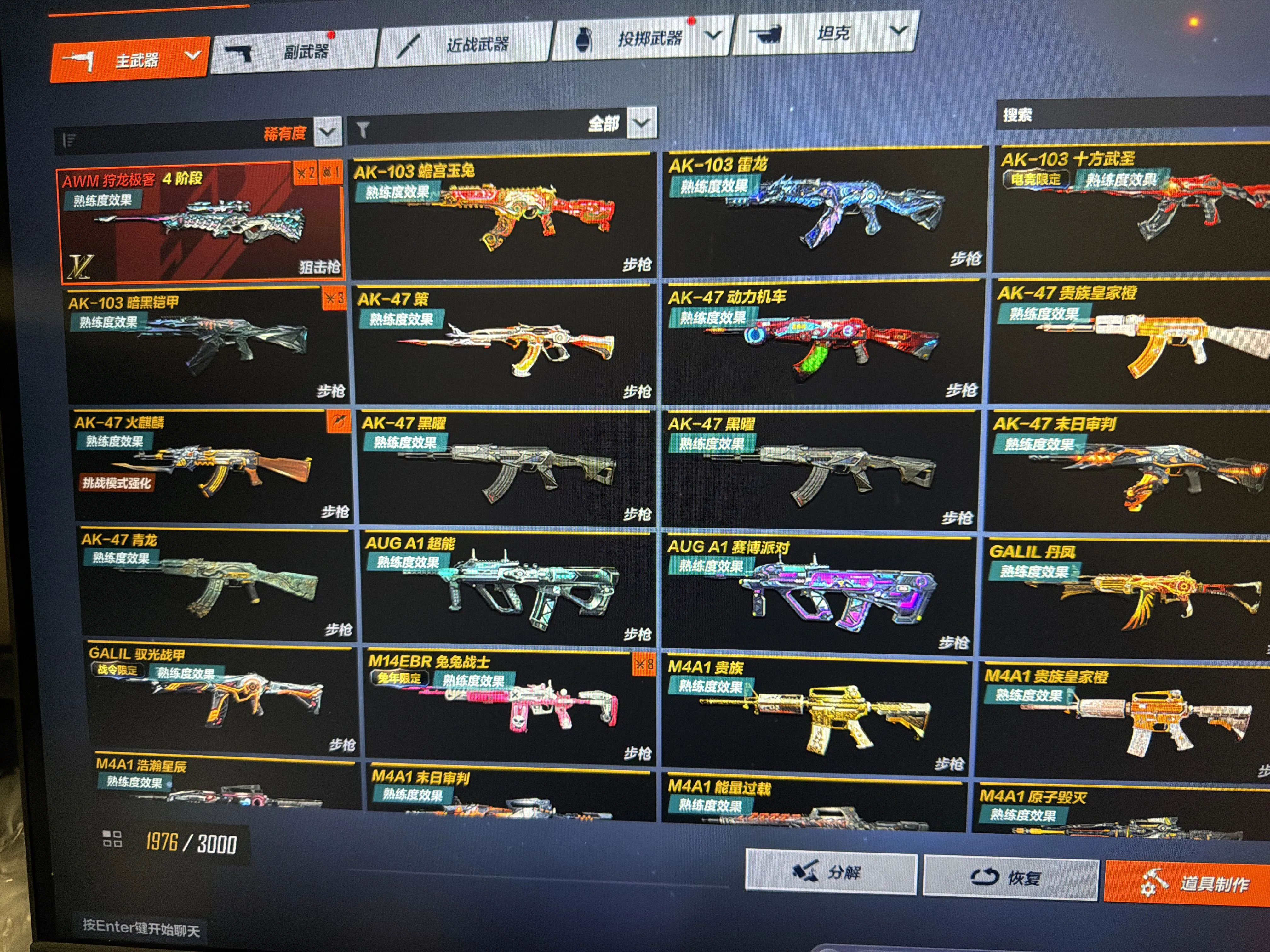 80金,满级神话awp,6把传奇爪刀,生化幽灵满角色,强化佣兵满角色,热门生化枪全部满级,账号已备案