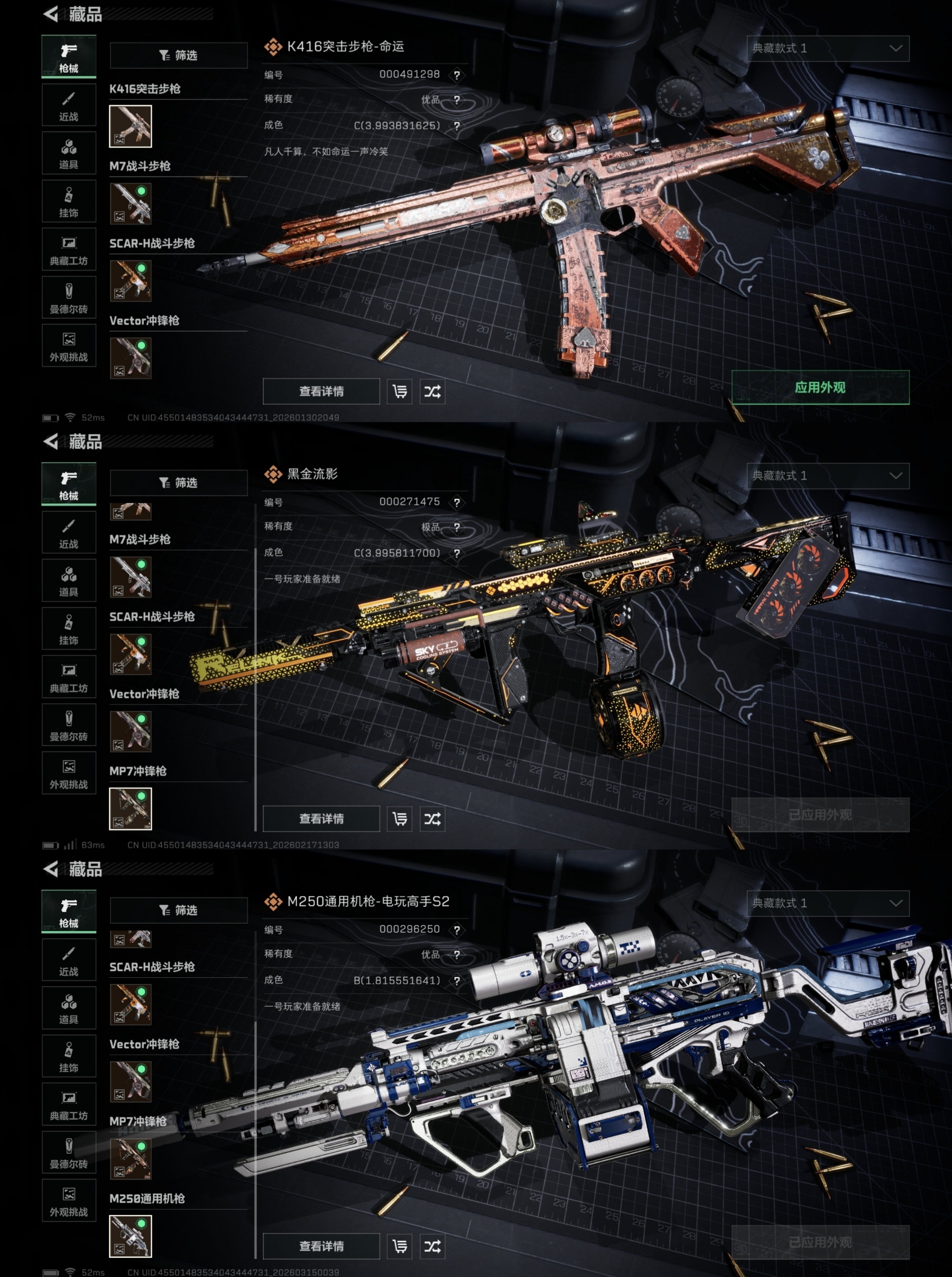 【全平台】 凌霄戍卫M250电玩♦️满红皮7刀6砖皮♦️M7棱镜暗星影锋♦️MP7电玩信条北极星♦️开挂锁IP