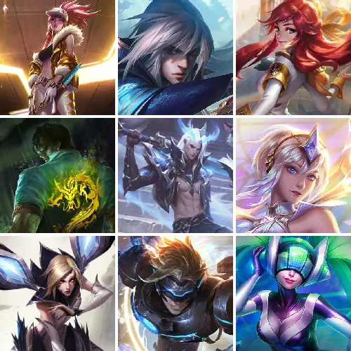 基本的限定皮肤均有,每个英雄只差几个皮肤就全了。