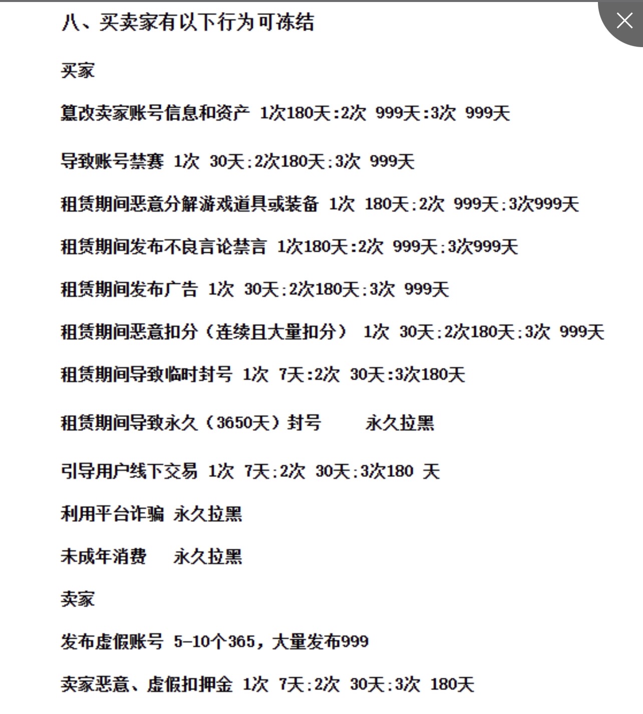 永不拉黑,敢骂人禁言,开挂,恶意改 Id,直接送客服冻结处理,处罚结果请看图三