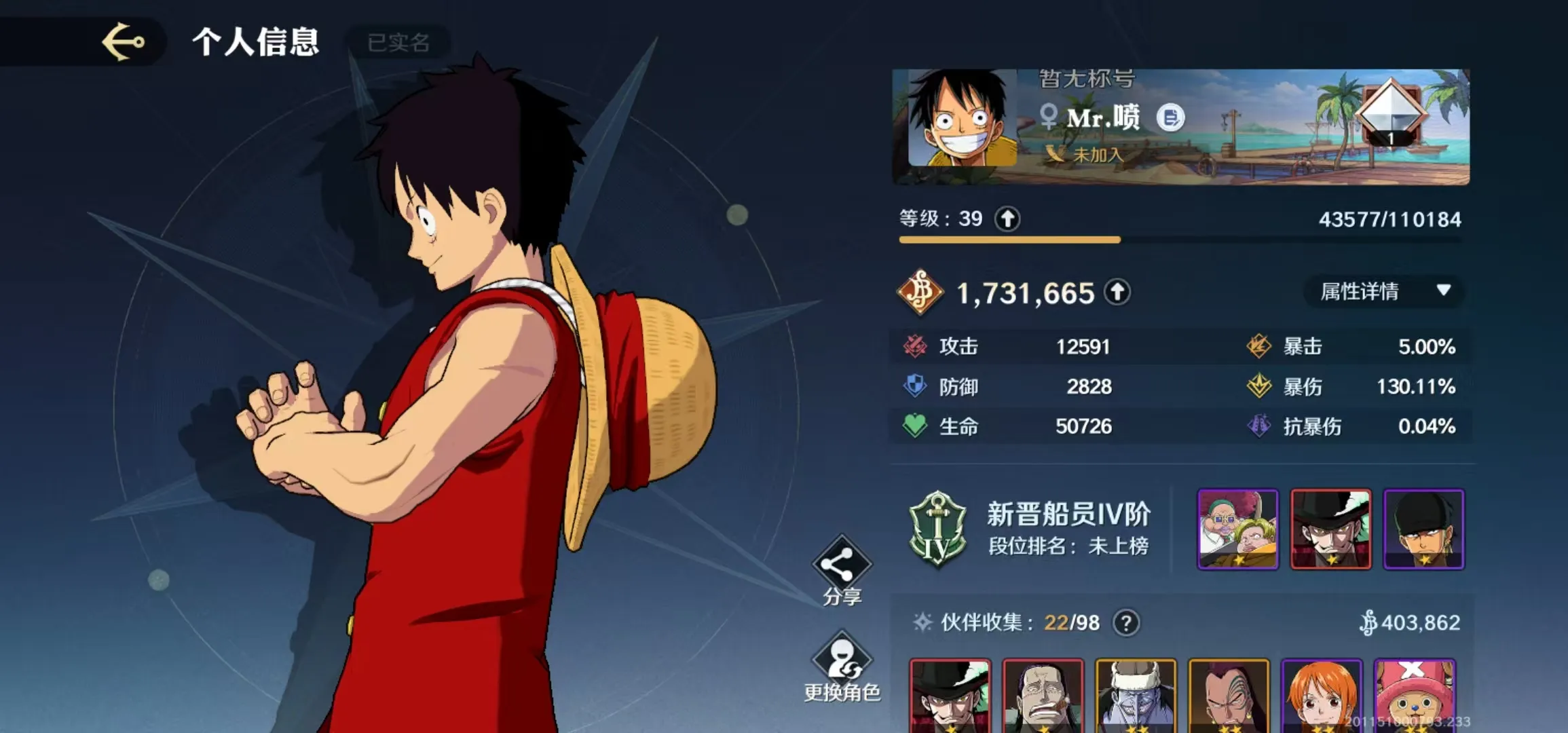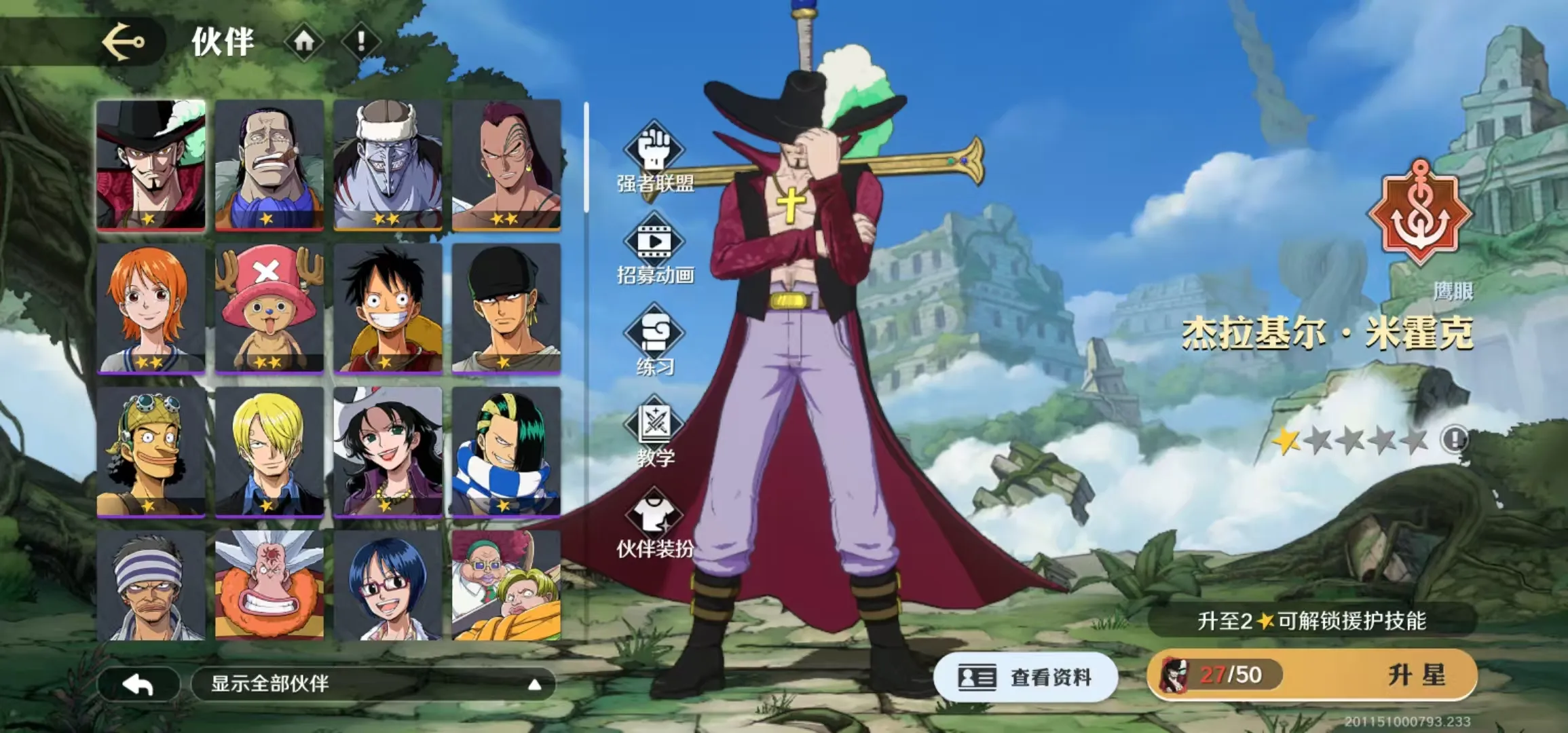 【安卓】 22伙伴!米霍克、鳄鱼、阿龙、瓦帕、乔巴、路飞、空岛贝16、霸气3