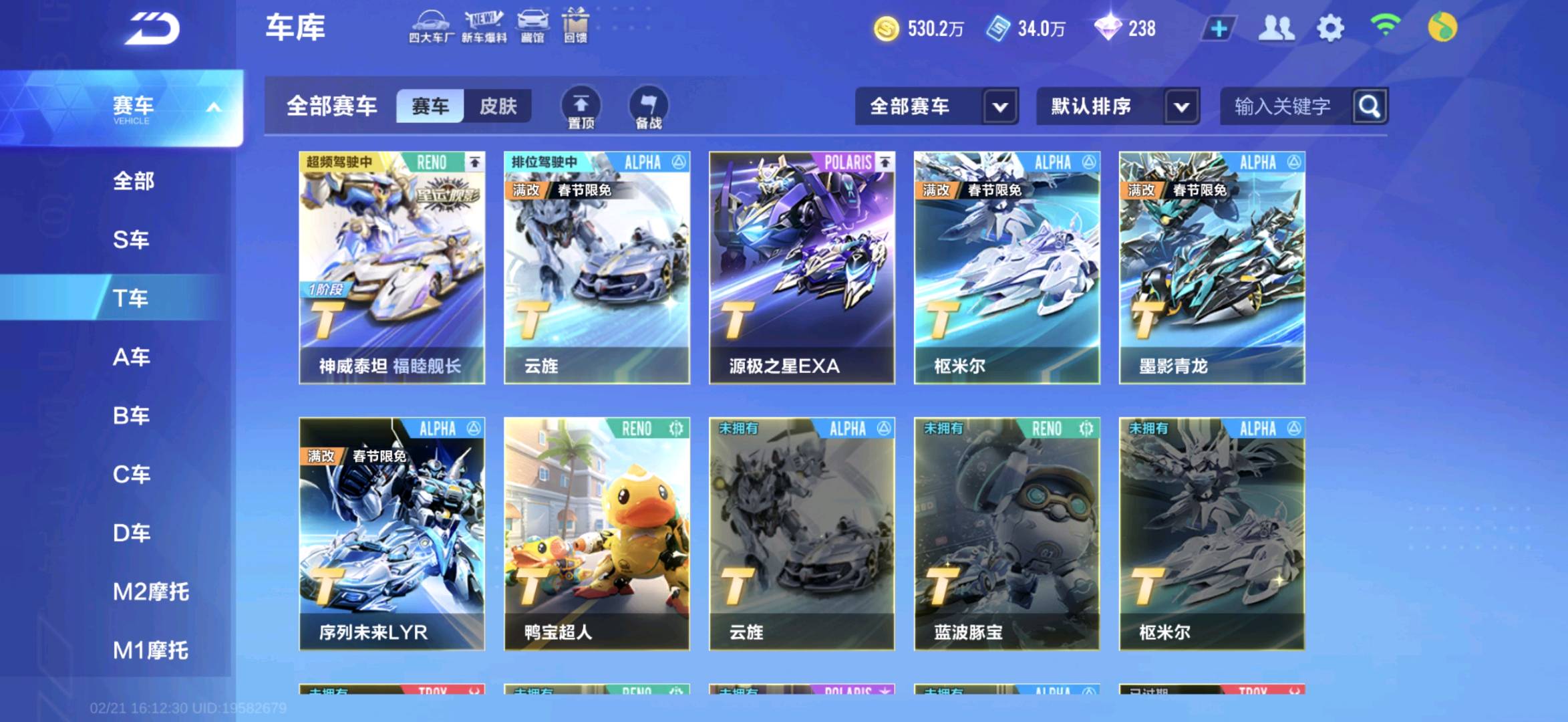 v12 3T车神威泰坦/源极之星/小黄鸭/8联赛车/1骑宠/1幻生套/8魔法套/145A车