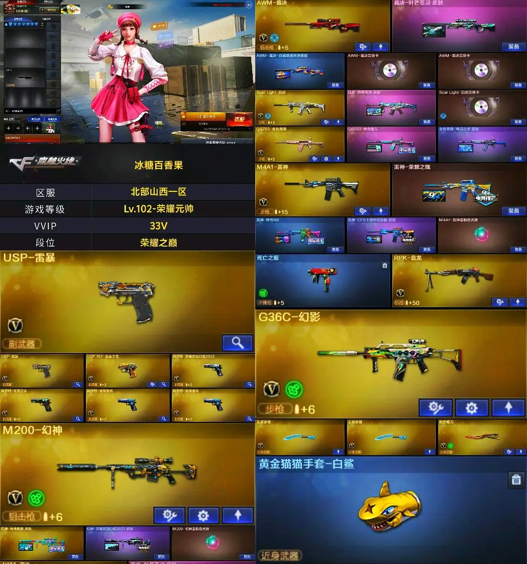 【允许排位】幻神欧欧白鲨世冠❤️柯尔特无冕之王②把雷暴满副手裁决白虎三件套QBZ宠儿G36C幻影炽芒蝶刃白鲨猫猫