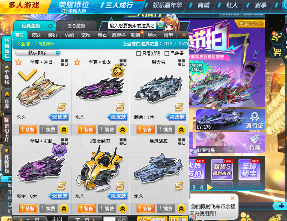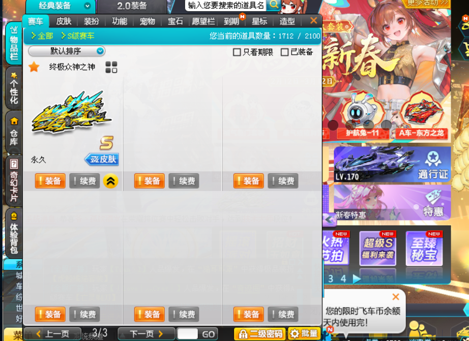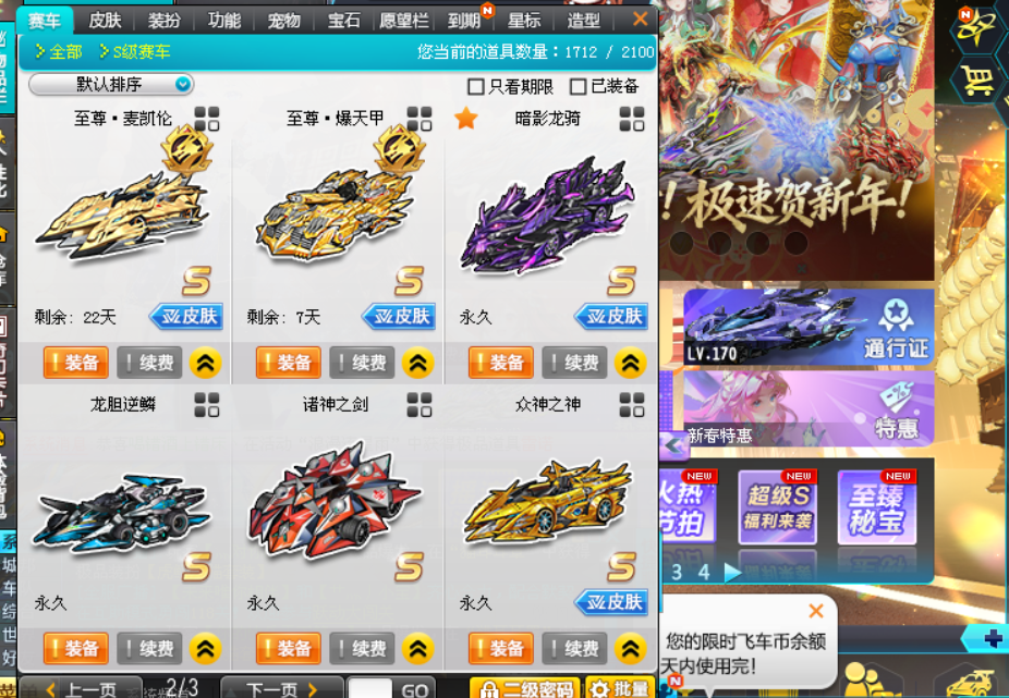 马年龙年双年限车:满改3四级至尊.踏月/满改至尊.冰夷/高改神之神-麒麟/终极众神-吕布